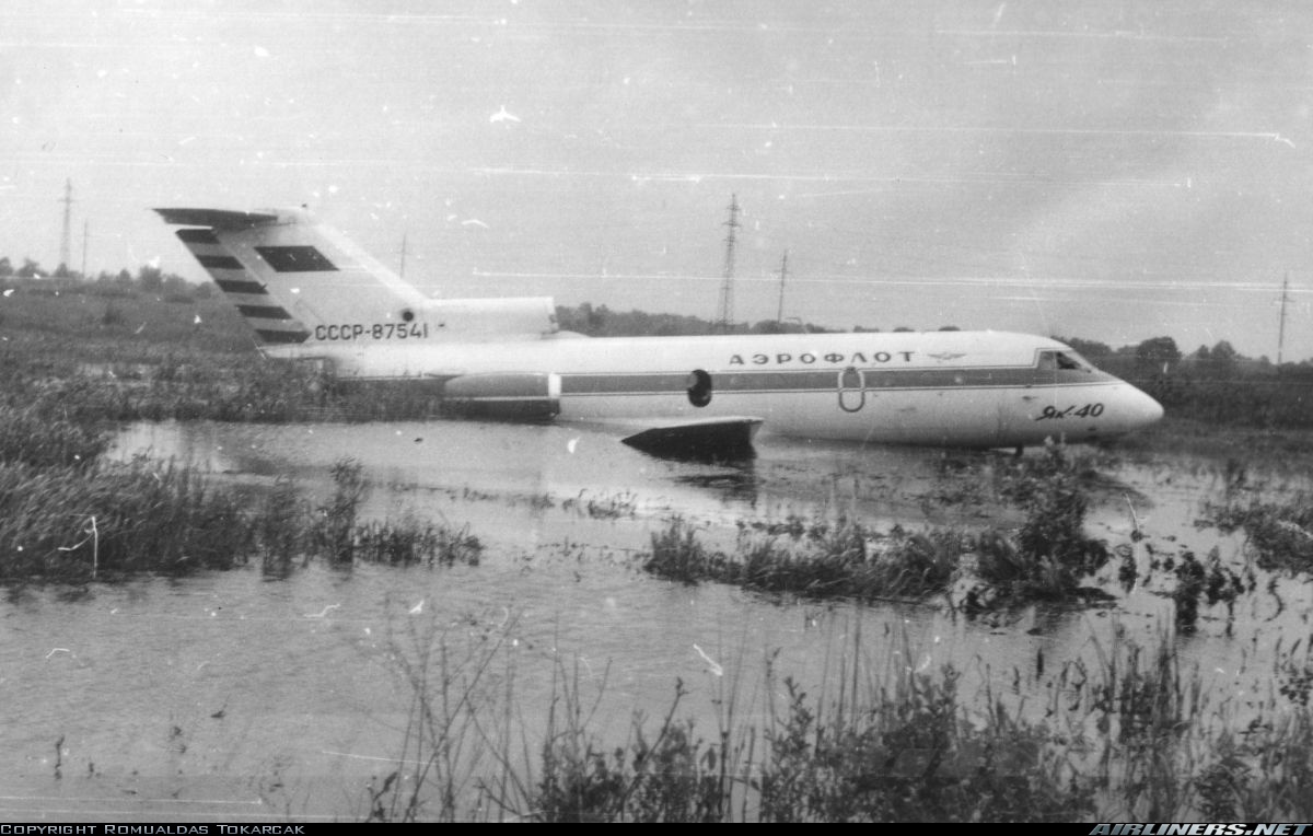 2 июня 1976г. днем в простых метеоусловиях при заходе на посадку в аэропорту Жуляны произвел вынужденную посадку вне аэродрома самолет Як-40 № 87541 Литовского управления ГА., командир корабля т. Штилюс B.C. На высоте 700м, получив указание диспетчера занять высоту 400м, командир корабля дал команду бортмеханику Синкявичусу Л.С. установить режим двигателям "малый газ" и приступил к снижению. В это время произошел одновременный останов трех двигателей. Попытка экипажа запустить двигатели в полете результатов не дала и командир корабля произвел вынужденную посадку с убранным шасси на заливном лугу. Самолет имеет повреждения. Экипаж и пассажиры невредимы. Причиной остановки двигателей в воздухе является перевод бортмехаником Синкявичюсом Л.С. РУД за упор малого газа в положение "стоп". Расследованием установлено, что подготовка экипажа к выполнению полета организована неудовлетворительно. Контроль за действиями бортмеханика в полете со стороны командира корабля не осуществлялся. Отбор технического состава для переучивания на бортмехаников в литовском управлении ГА организован некачественно. Подготовка и ввод