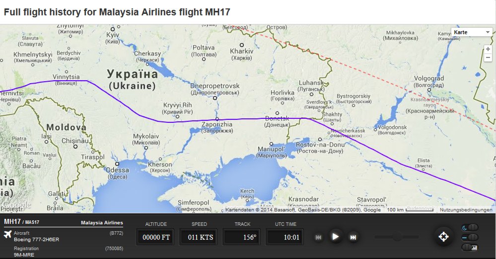 Я никого не обвиняю, а flightradar это не СМИ. Просто отмечаю, что по данным вторичной радиолокации высота борта и скорость сохранялись нормальными до Снежного, находящегося в тылу сепаратистов. Есть еще некоторые, с моей точки зрения, факты. Видно и по разбросу фрагментов, да и прямо на видео, что самолет падал не целиком. Больше того, точка падения лежит назад по маршруту, т. е. северо-западнее Снежного. В то же время экипаж не предпринимал никаких маневров до Снежного. Стало быть, произошло внезапное и серьезное разрушение в воздухе, произошедшее на эшелоне в районе Снежного.