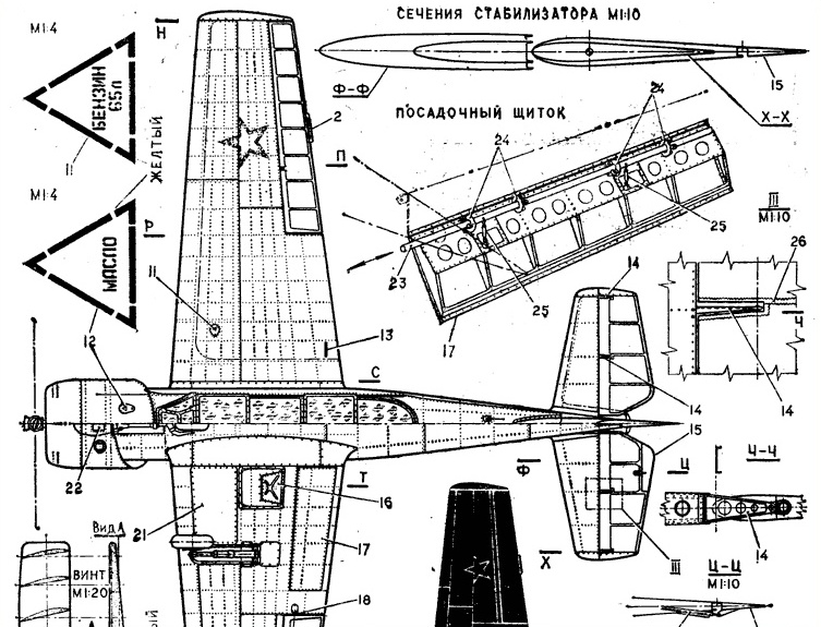 Номером одинадцать обозначена заливная горловина, которая закрывается лючком. Ось качания лючка параллельна продольной оси самолёта. Когда он был не закрыт, качался вправо-влево.