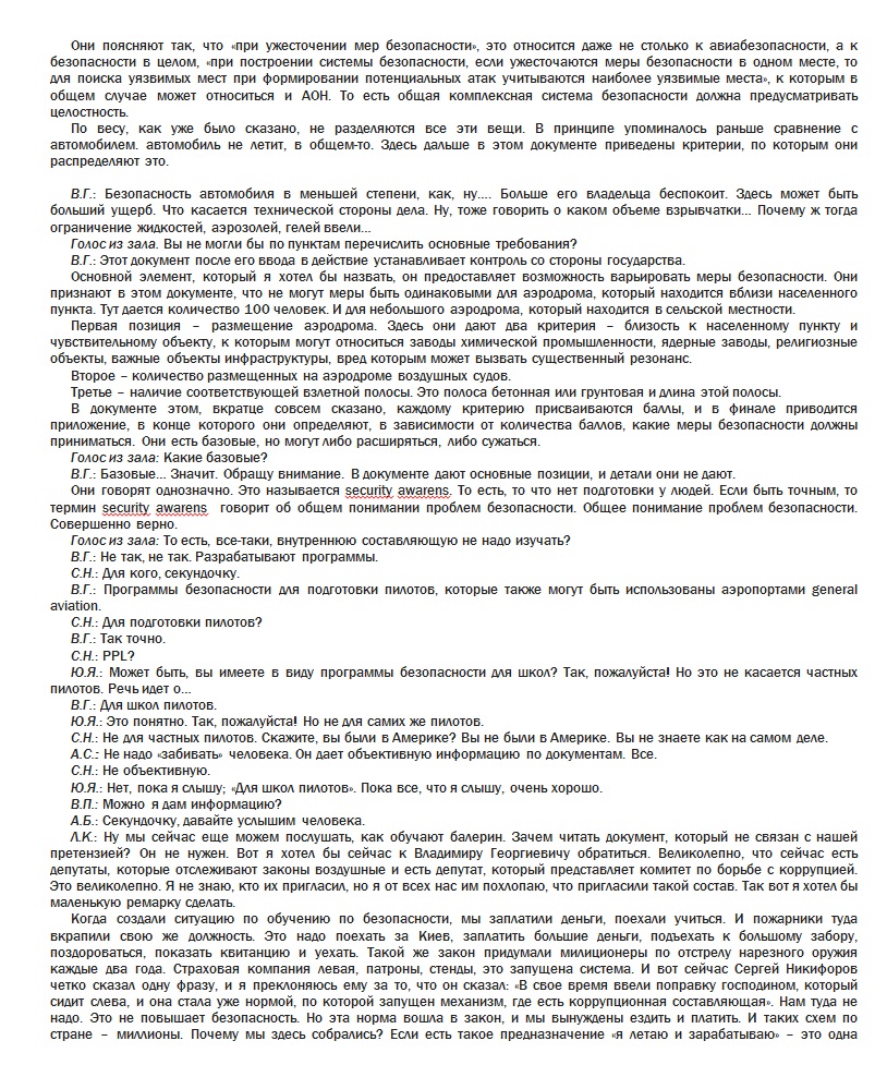 И в-третьих, мне абсолютно ничего не стало понятно, мало того, насторожило, вот это высказывание одного из присутствующих частных пилотов: