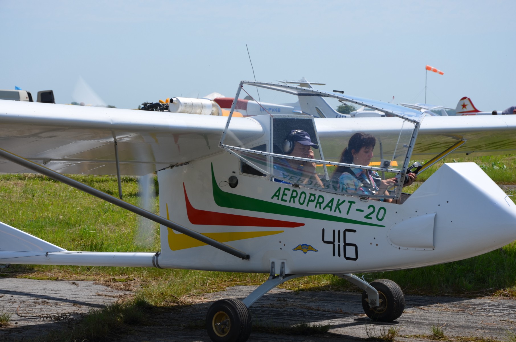 И порадовало что Вася Артемчук привёз новую модель стабилизатора висения (красная деревянная деталь в руках автора). Что позволило безопасно повисеть не только самому Василию, но также и многим другим талантливым авиаторам.