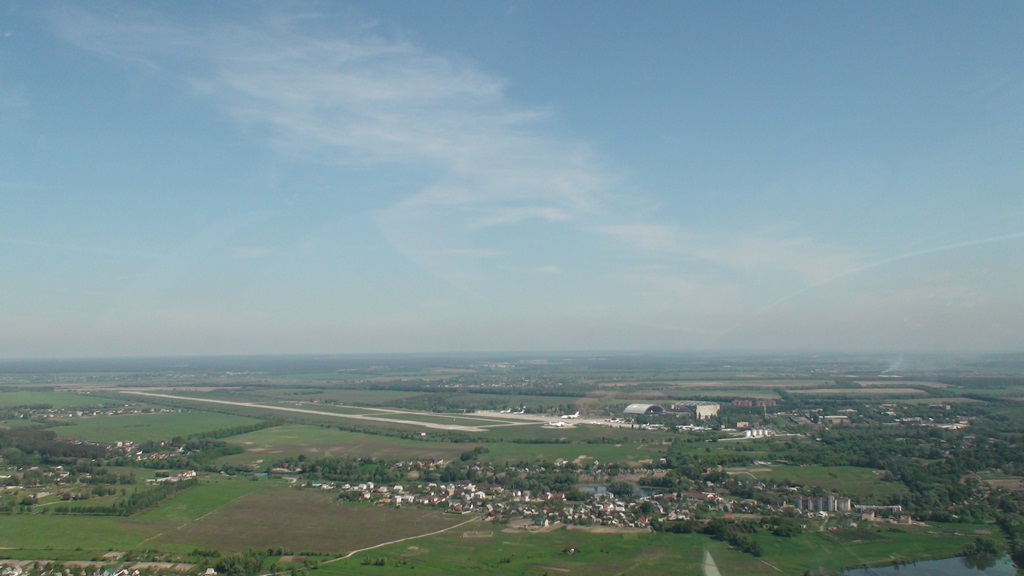 В 10.20 по Киеву, с интервалом несколько минут, в заранее оговоренном порядке, взлетели в Гостомель, где все приземлились до 10.50. Зарулили на стоянку и начали процедуры прохождения авиационной безопасности, пограничников и таможенников. Необходимо было заполнить генеральную декларацию и обязательство об обратном ввозе ВС. Все процедуры заняли 2.5 часа из которых большая часть ушла на ожидание специалиста по борьбе с контрабандой, который приезжает из Киева по вызову таможенников. Вылет пришлось перенести на 1.5 часа. Прямо перед вылетом провели брифинг пилотов и еще раз оговорили действия и радиообмен в аэропортах и на маршруте. В конце концов, нас отпустили и мы взлетели в сторону точки выхода ABROK, что на границе с Белоруссией
