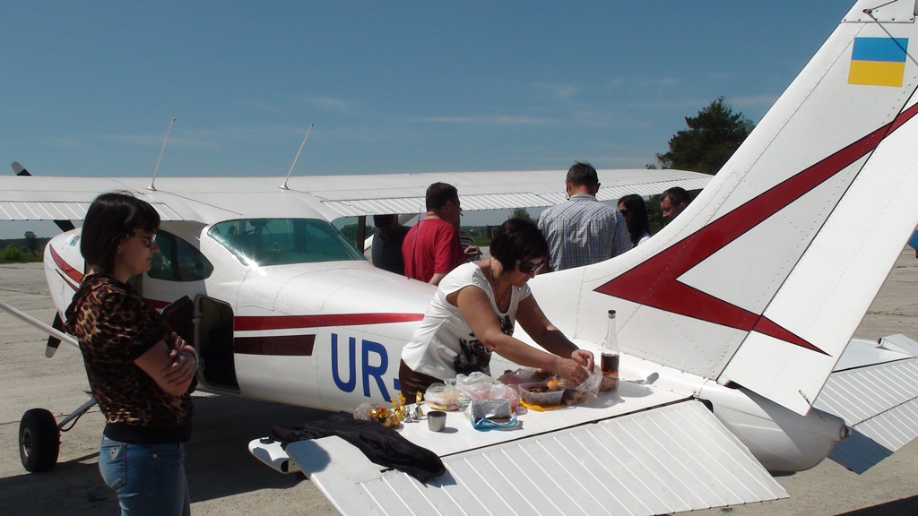 Утром прилетели Игорь и Оксана Табанюки на Цессне-182 из Коломыи. Так же приехали экипажи А-22 и Цессны-172.
