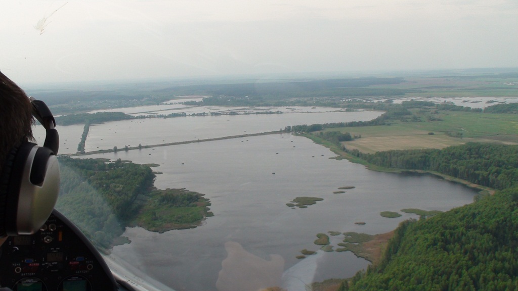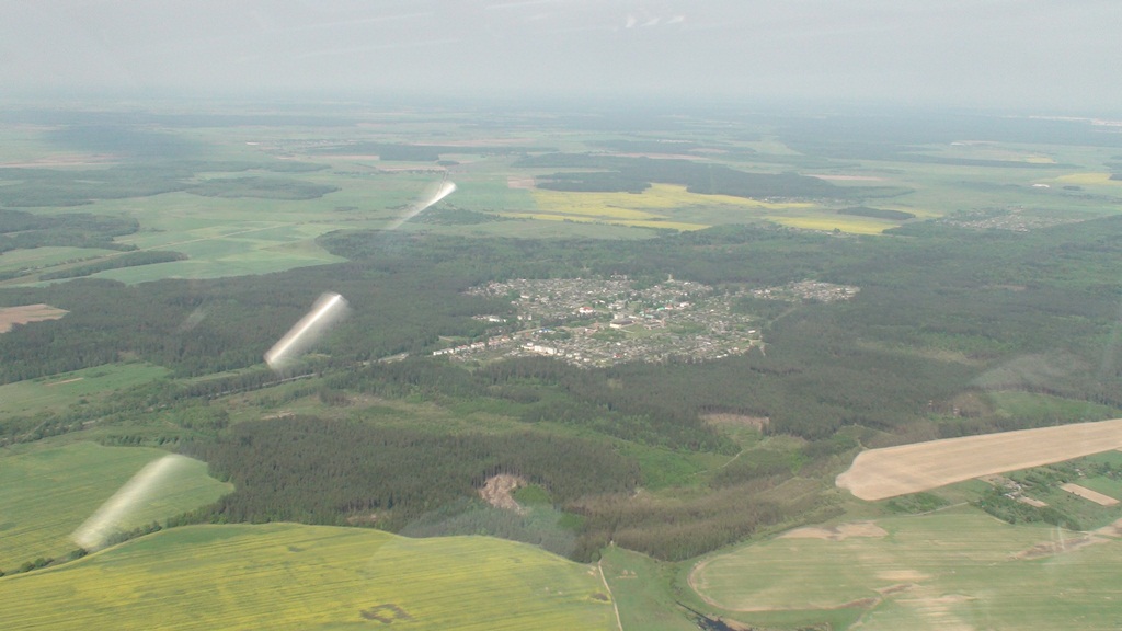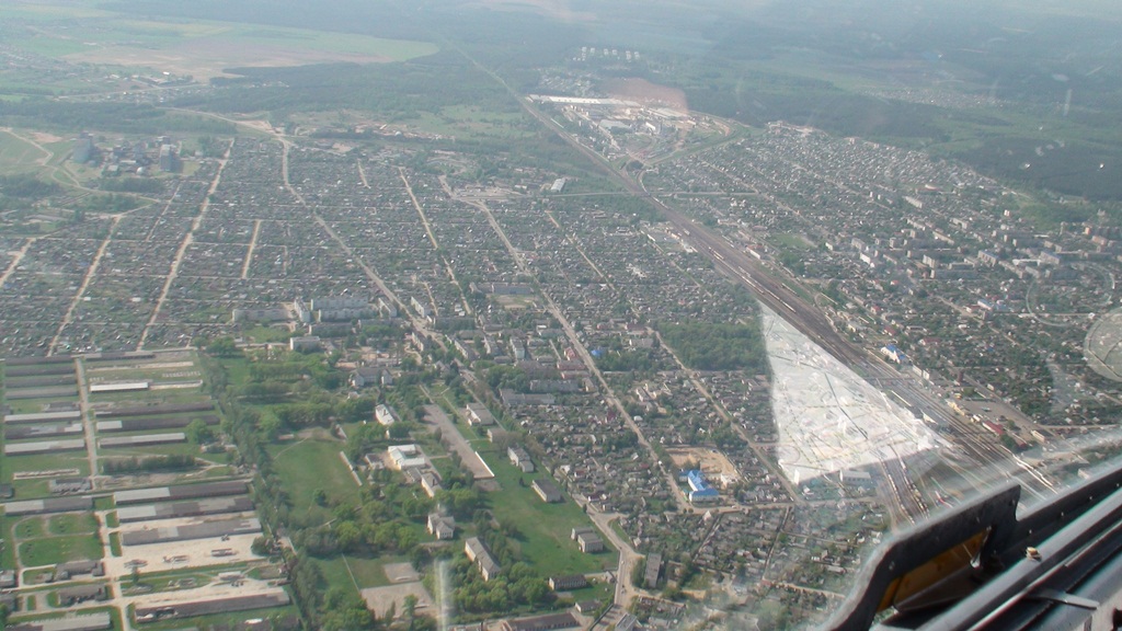 Взлетев с Гостомеля и вылетев из зоны CTR, поменяли частоту на Киев-Информацию и попытались с ними связаться. Связь плохая, но кое как удалось сообщить расчетное время ABROK набирая высоту. По плану полета три самолета с транспондерами летели на высоте 1500 м, остальные два на 600 м. Набрали 1500 м перед границей, пройдя сначала под ТМА "Киев-Радар". Белоруссия нас встретила довольно не плохой связью, но количество бортов и поток слов авиационного алфавита поначалу сбили с толку диспетчера "Гомель-район" и он называл нас как хотел. Мы не обижались и даже некоторые из нас его упорно назвали Аброком. :) в Белоруссии нет пространства G и все летают по маршрутам под управлением диспетчера, но мне это даже было интересно. Чувствуешь себя командиром этакого Боинга идущего по международной трассе. 8) :)
