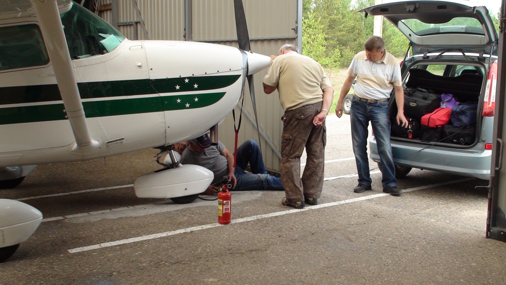 Аэродром Филитарина расположен на краю леса. Дул сильный боковик со стороны леса, поэтому перед полосой немного трепало. Приземлились и сразу начали ставить самолеты в ангар. Удалось поставит все, кроме Цессны Табанюка. Всего поместилось в ангар, вместе с местными, 10-ть самолетов. Особое удовольствие доставил процесс "втискивания" в ангар Цессны-172, у которой размах крыльев больше, чем ширина ворот.