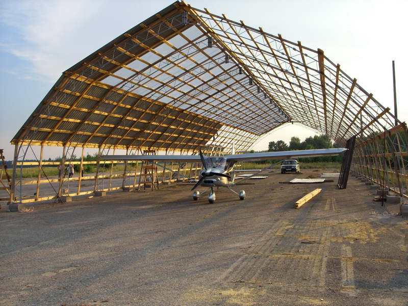 Ангар достаточно простой и мне кажется удобный. Поскольку бюджет не позволял замахнуться на строительство нового, я долго летал по окрестностям в поисках б.у. В конце концов нашел подходящий вариант и выкупил его у хозяина за в общем-то небольшие деньги. Из всего, что там было пригодились только сами фермы да и те впоследствии сильно переделали.