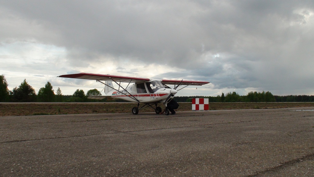 В воскресенье 13.05.2012 проснувшись и позавтракав приехали на аэродром. Нам необходимо было заправится до Украины и хотелось не много полетать в районе аэродрома. Бензин в Белоруссии такой дешевый (что то порядка 7.6 гривен за литр), что Славомир не хотел брать за него деньги. 8) Но мы настойчивые. :) Погода в тот день не баловала - ветер поперек полосы и ливни, но нам удалось не много полетать. Игорь Табанюк с Оксаной и Сергей Исаченко в тот день перелетели на Минск-1.