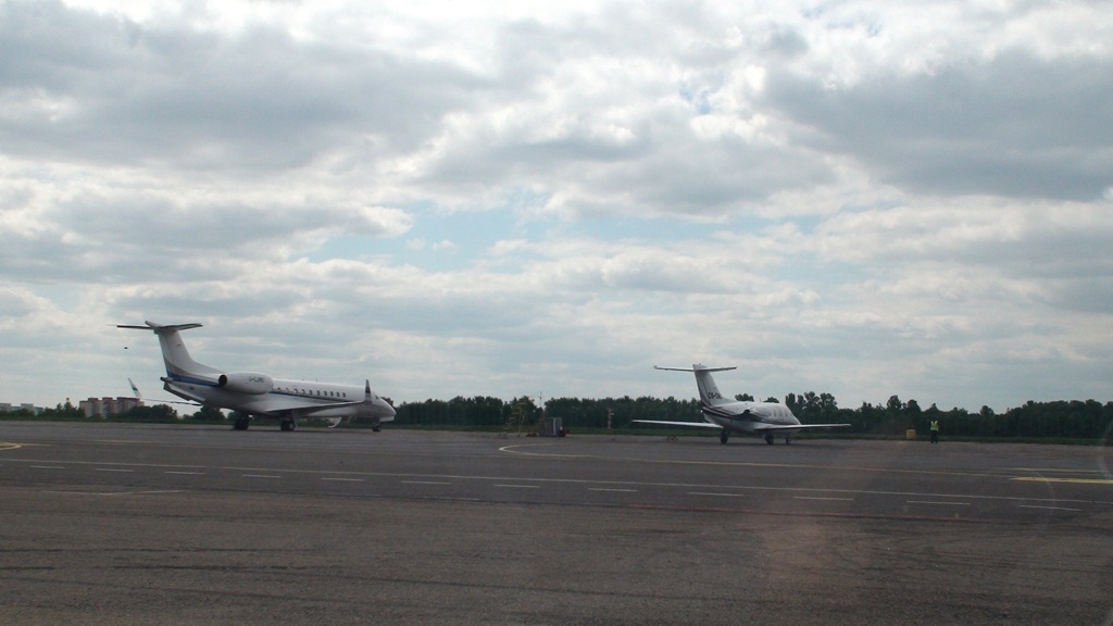 Итак, летели группой до входа в CTR Минска-1, а затем каждый летел и вел радиообмен самостоятельно. После прилета, когда мы стояли около самолета, к нам подошел один, солидного вида, пожилой мужчина посмотреть самолет и сказал при этом следующее: "Вы же перед вылетом не забудьте сходить в здание где вышка, чтобы отчитаться за штурманскую подготовку и метео. У нас все как Советском Союзе! Никаких "брифингов"!" :( Мы пообещали это сделать после прохождения пограничных и таможенных процедур. Для этого, нас провели всех через здание аэропорта на выход. Там мы заполнили три экземпляра генеральной декларации и отдали один таможеннику, который посоветовал проходить безопасность и границу, пока он оформляет обратный вывоз наших самолетов. Что мы и сделали. Потом подождали таможенника минут 20-ть, используя это время для нашего предполетного брифинга. Таможенник принес нам генералки и мы пошли к самолетам. Вся процедура затянулась на час больше чем мы предполагали и заняла немного больше 2-х часов, поэтому пришлось сделать перенос вылета на час. Когда пришли к самолетам, мы уже были , как бы за границей, поэтому в здание с вышкой не пошли, нарушив свое обещание. :oops: Сели в самолеты, прослушали информацию, запросили условия выхода и затем запуск. Во время прогрева, прилетел бизнесс-джет с англоговорящим пилотом. Было приятно осознать, что понимаешь радиообмен на английском. :)