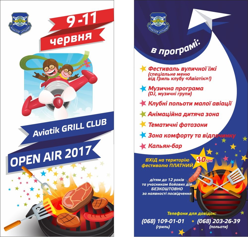 9-11 июня Aviatik GRIL CLUB OPEN AIR 2017 ZHYTOMYR Гриль фестиваль проводит дни открытых дверей для пилотов малой авиации!!! Прилетайте на фестиваль уличной еды (специальное меню от Гриль - клуба "Авиатик" Музыкальная программа (музыкальные групы, DJ) Анимационная детская зона, тематические фотозоны, Зона комфорта и отдыха. Также можно посетить уникальный музей космонавтики, родину Сергея Павловича Корольова! Прилетевшим пилотам и их гостям вход бесплатный, а также 10% СКИДКА В РЕСТОРАНЕ "АВИАТИК" ОТДОХНИ С КОМФОРТОМ! Прилет на аеродром Житомир 9.06.2017 до 18.00 связь "Житомир-Информация" частота 119.750, после 18.00 связь "Смоковка-вышка" частота 119.750. Прилет 10.06.2017 связь "Смоковка-вышка" частота 119.750