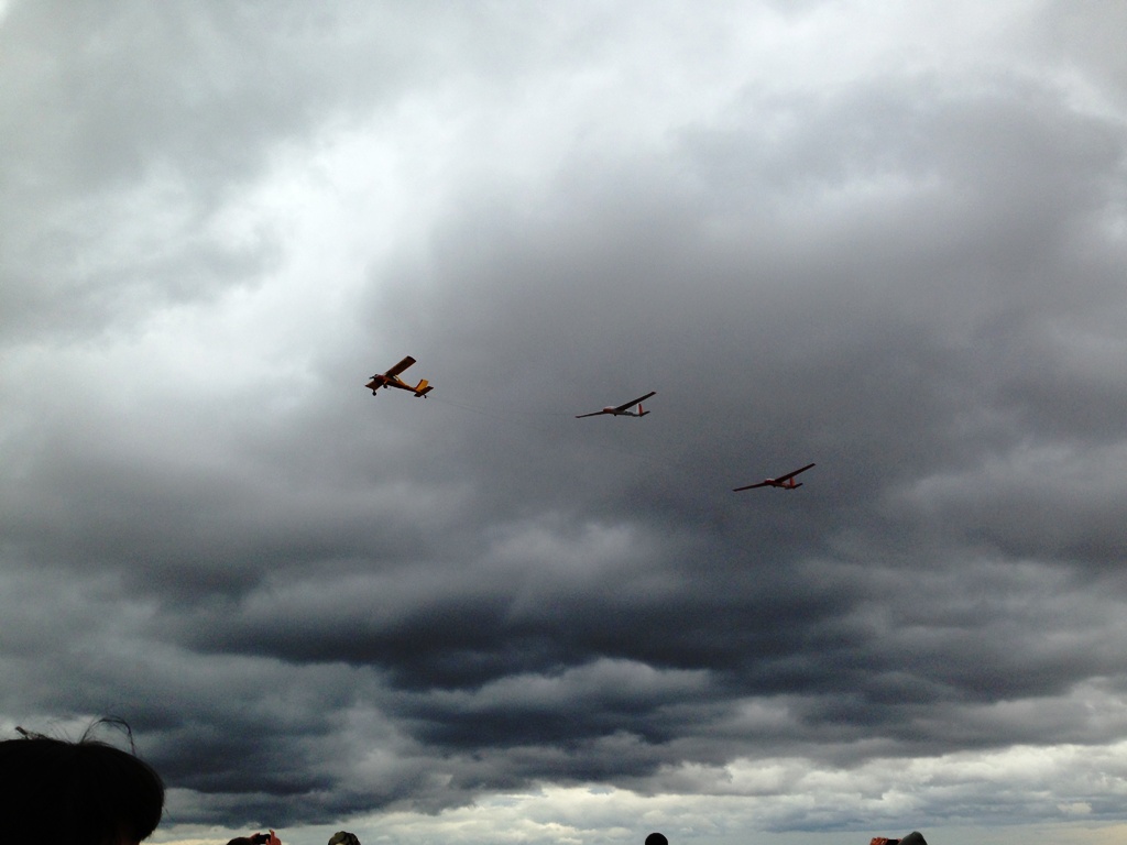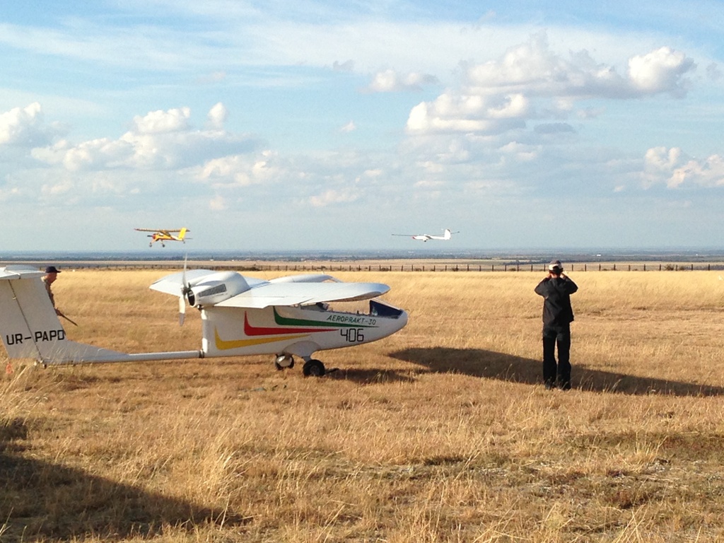 Праздник состоялся! Празднование юбилея планеризма прошло на высоком уровне. В митинге участвовали такие известные люди в авиации, как генеральный конструктор КБ Антонова Кива и директор завода Моторсич Богуслаев, президент ФАС Украины, Герой Украины Галуненко и президент ФАС России, вице президент ФАИ Иванов, пилоты испытатели, Герои Советского Союза Курлин и Мигунов, президент федерации планерного спорта России Рябчинский, вице президент федерации планерного спорта России Чарский. С приветственными речами выступили представители Правительства и Верховного Совета Крыма, представители Минобороны и Минпромполитики, представители городских и районных властей. Приехало и прилетело много известных авиационных спортсменов, таких как 3-х кратный Чемпион Мира по пилотажному планеризму Каминский из России, Чемпион Мира по планеризму Гапонович, Чемпион Европы по планеризму Топорова, Чемпион Мира по дельтапланеризму Бондарчук, Чемпион Европы по СЛА Пугач. Так же были такие известные люди в авиационном спорте как Калашников (один из основных организаторов празднования), Полищук, Домбровский, Кононенко, Грибанов, Руснак, Воронин, Дробышев, Гришенчук, Коркач, Зозуля (планерист), Зозоля (дельтапланерист), Опарина, Воронин, Астахова, Волченко, Какурин и т.д. Я был очень рад увидеться с пилотом испытателем из Москвы Селивановым (и слетать с ним на А-36), Тетюшевым из МАИ, Дернбахом из Польши и, конечно, с моим Учителем, основателем Аэропракта, Василием Семеновичем Мирошником. Извиняюсь, если кого то не упомянул. На юбилей прилетели: 4-е Аэропракта из Наливайковки - 2-а А-22, А-30, и А-36, К-10 оттуда же, мотодельтаплан Аэрос и Скайренжер с Бышева (оба без посадки!), 4-х местный Зодиак с Бузовой, Вирус с Девичек, Соката и Як-18Т с Харькова, вертолет Ми-8 с Кировского. Были доставлены по земле 2-а мотодельтаплана, автожир и пилотажный планер Свифт (из Москвы!). Несмотря на плохую погоду, показательные полеты состоялись в следующем порядке: Л-39 с Кировского, Ми-8, пилотаж двух Блаников, поднятых в воздух Вильгой, А-36, а за ним два А-22 с дымами, Вирус, планер Янтарь, Скайренжер, мотодельтапланы, автожир. К сожалению, из за плохой погоды не выступал Каминский на пилотажном планере и парашютисты местного клуба, но нам удалось посмотреть эти выступления днем раньше, во время тренировки.