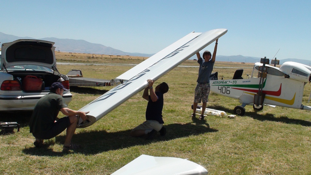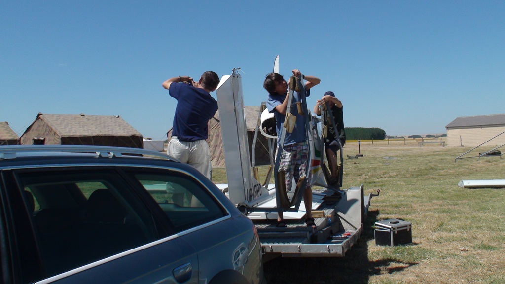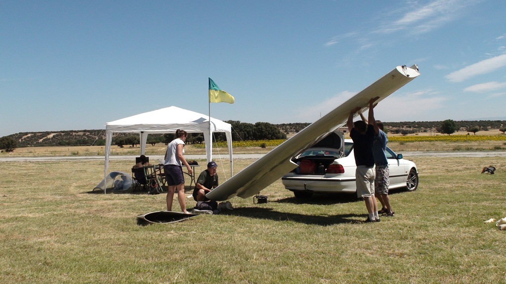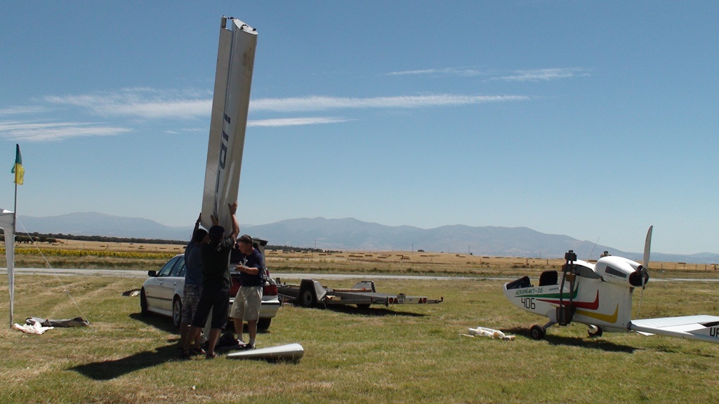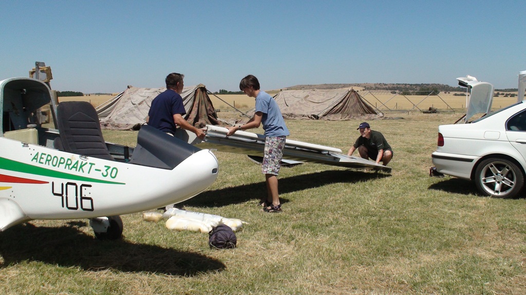 В этот раз поддержку на месте нам оказывал представитель Аэропракта в Испании Андрей Ливенцев. Это киевлянин, переехавший 10-ть лет назад в Испанию и помогший нам там продать 70-т А-22. В прошлом он пилот МиГ-21, сейчас летает на мотодельтах и свехлегких самолетах. Андрей сделал очень много для нас: арендовал дом, помог заплатить взнос за участие, помогал в общении с испанцами (не многие говорят на английском), выполнял функции механика, привез все необходимое в виде инструмента, палатки и т.д. В общем без него было бы трудно. 2-го августа мы добрались до дома, где нас уже ждали Андрей и его жена Даша. Поужинав в ближайшем баре вернулись домой и хорошо выспались. На следующий день довезли самолет до аэродрома, решили с организаторами где ставить самолет и начали его собирать.