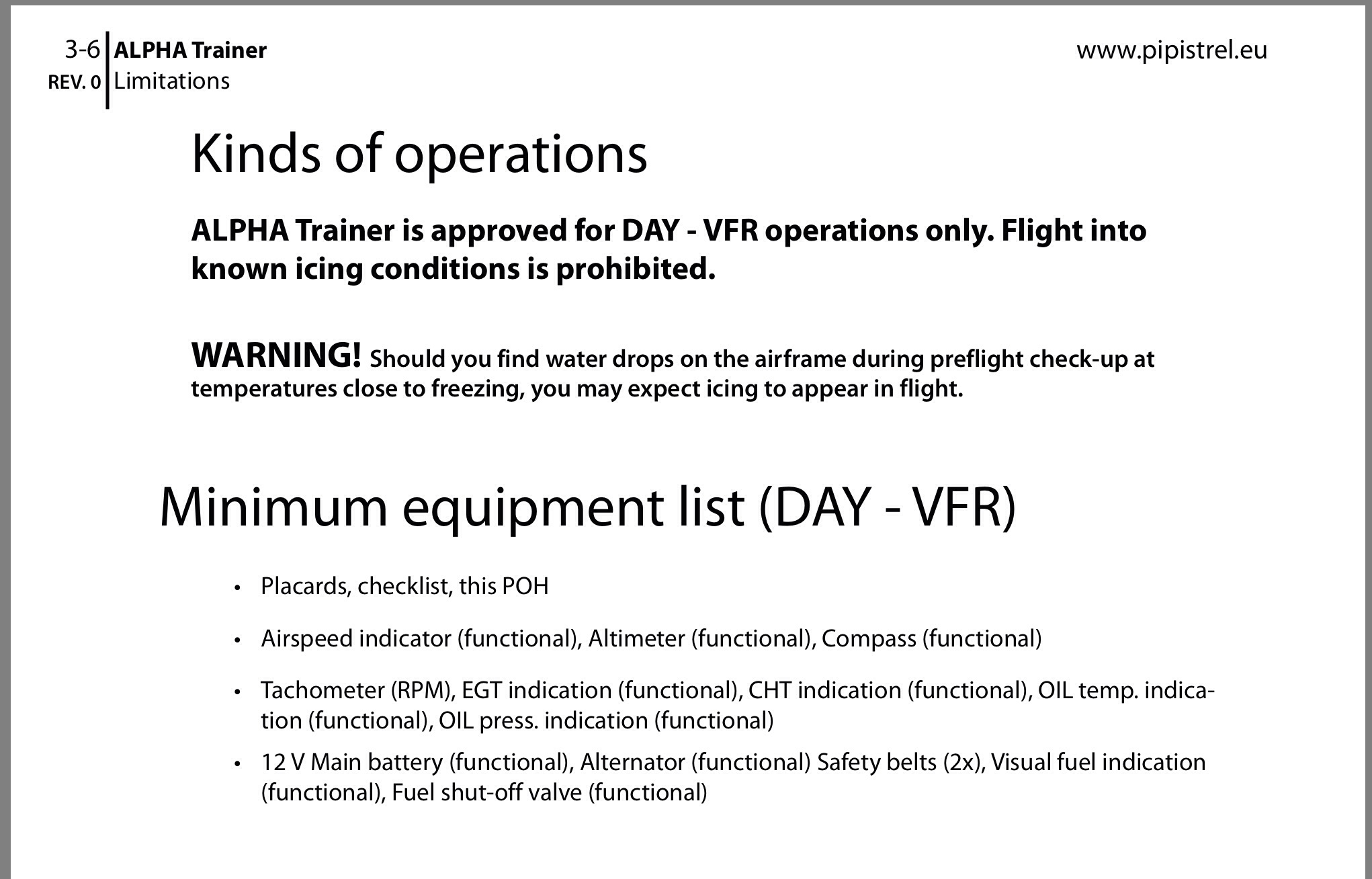 Однако, польский дистрибутор Pipistrel смог сделать сертификат и внести соответствующие изменения в РЛЭ, позволяющие выполнения полетов по VFR Day/Night.