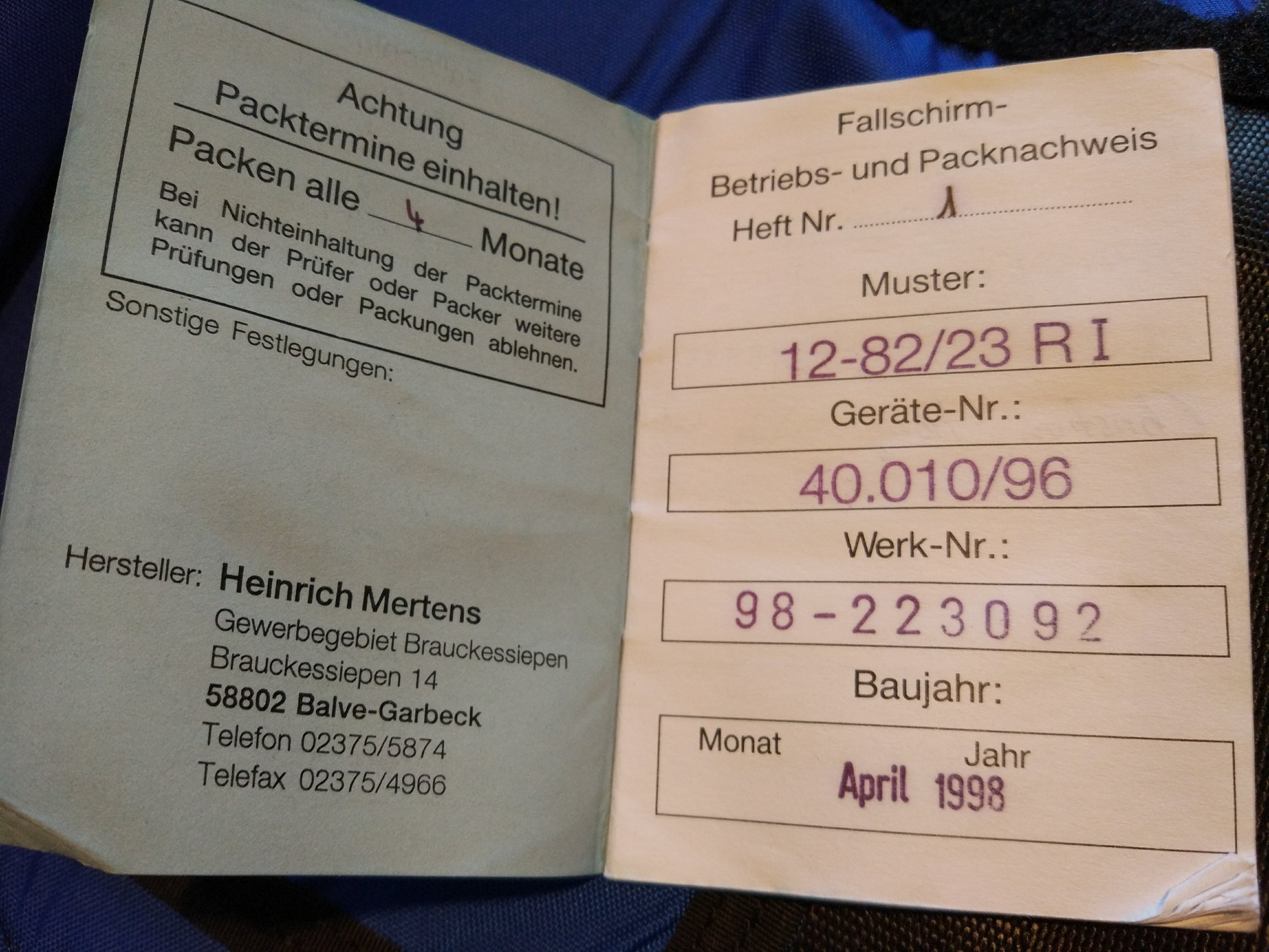 Парашют имеет идеальное техническое состояние, но по срокам вышел из календаря. Тем не менее, он по-прежнему в состоянии спасти вашу жизнь. Настоящее немецкое качество.
