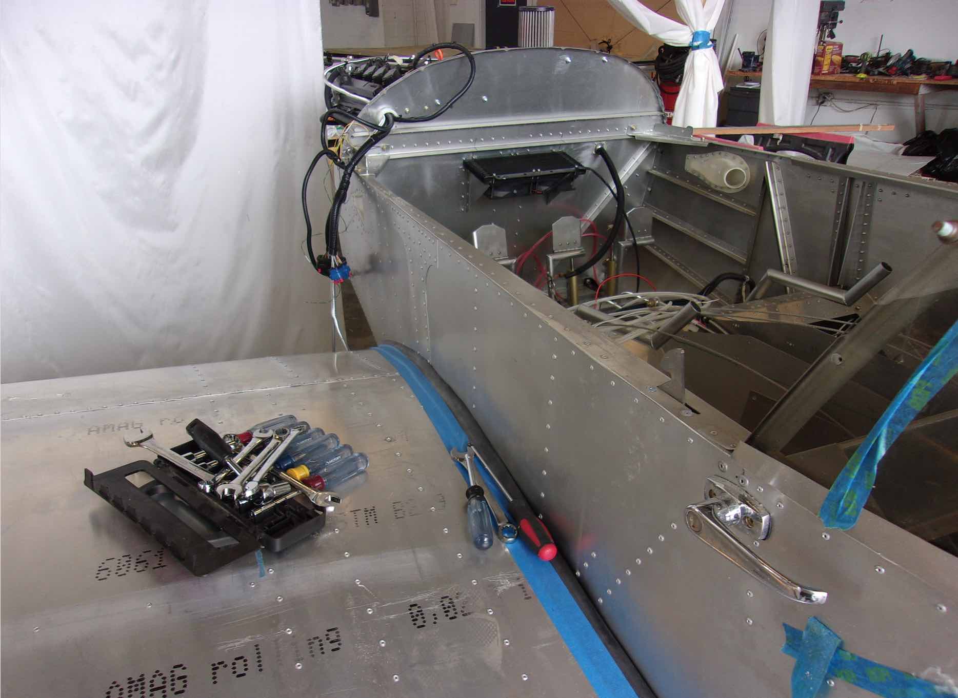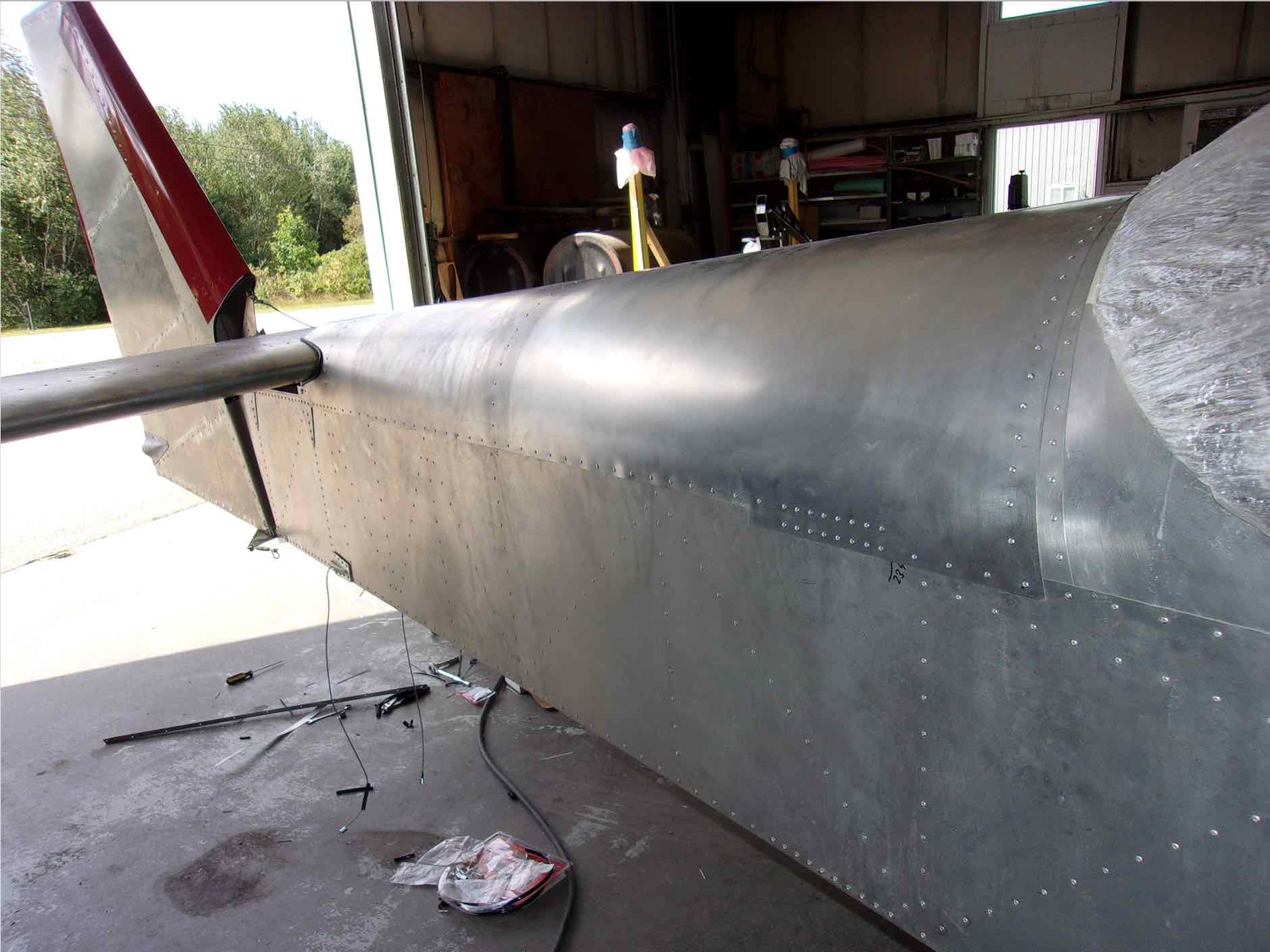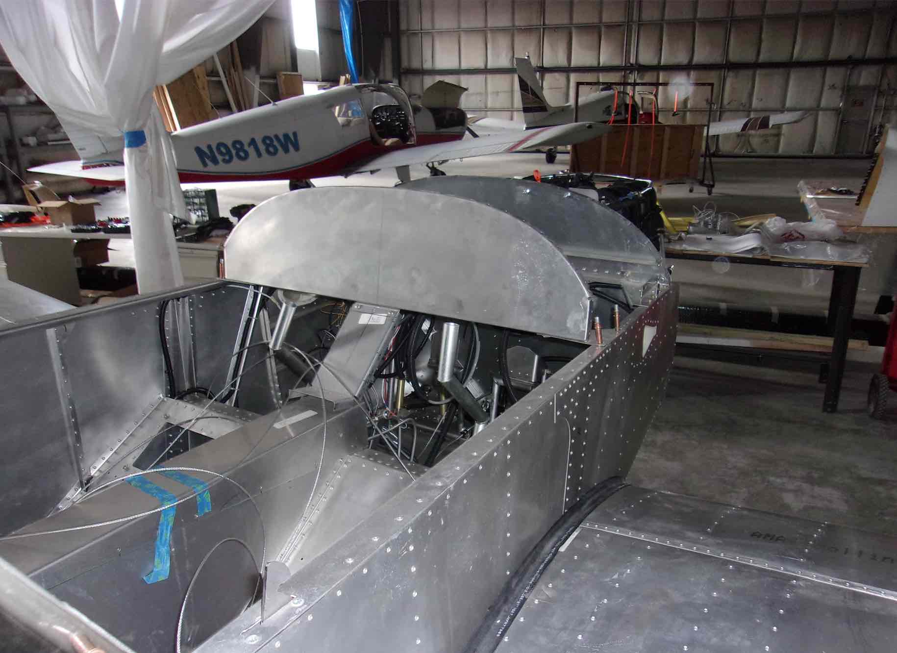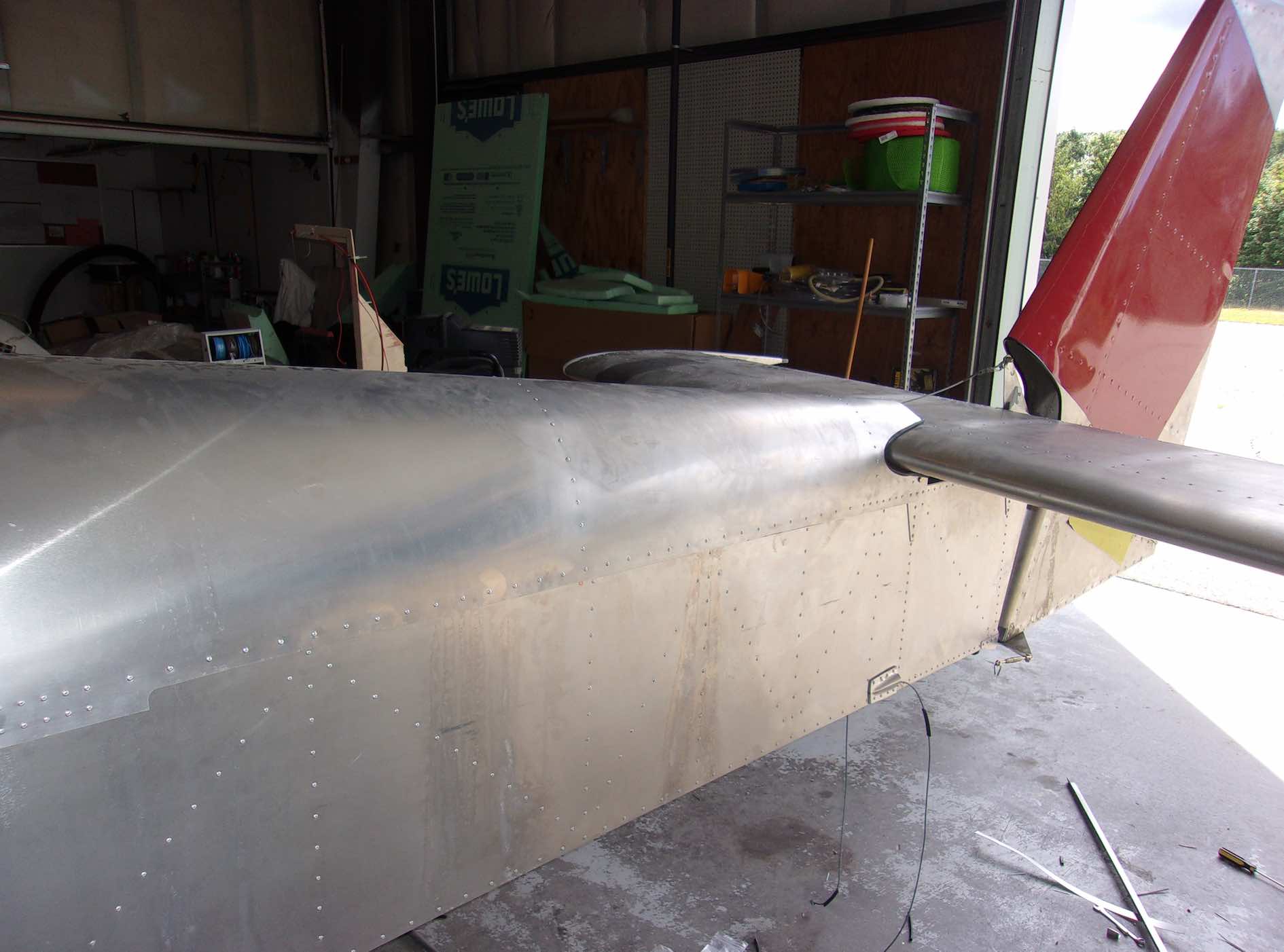 Чтобы показать немножечко прогресс давайте заглянем куда нибудь в потайное место. Например после того как присоединили крылья обнаружилось с два десятка "забытых" клепок которые надо было добить
