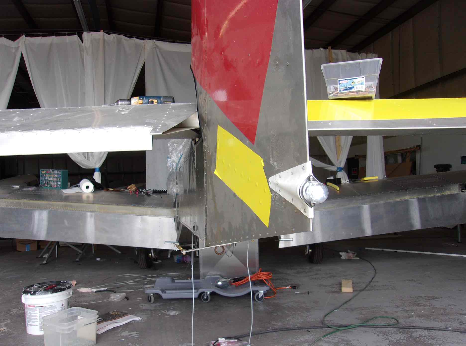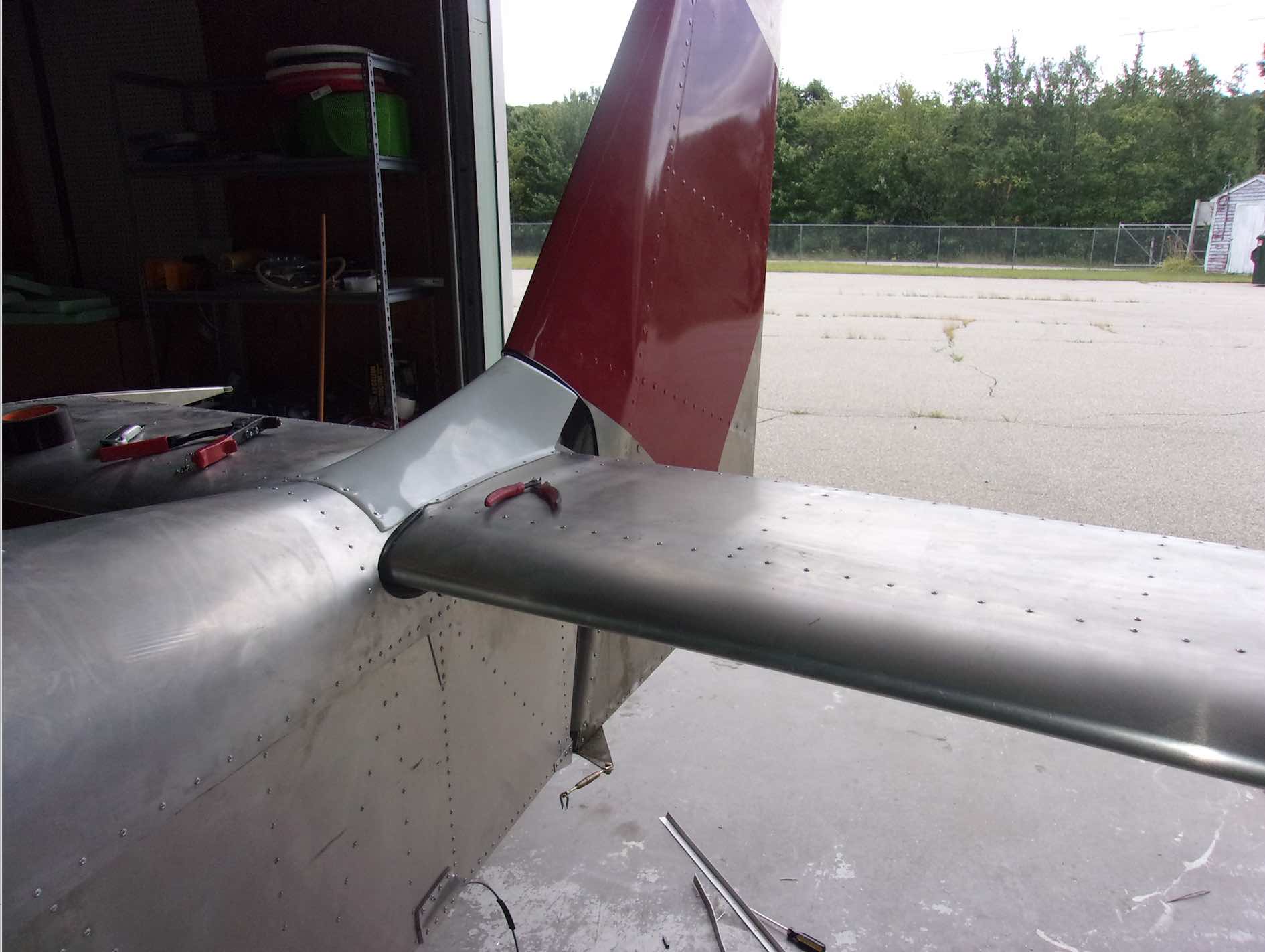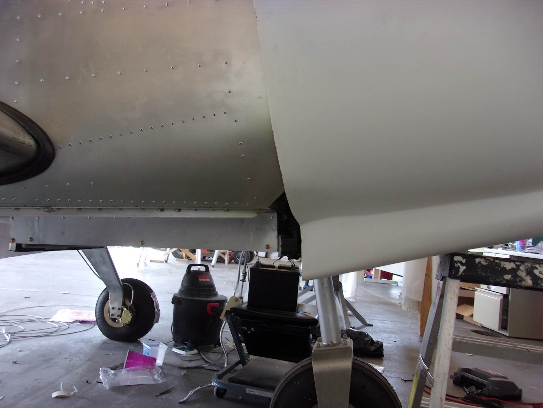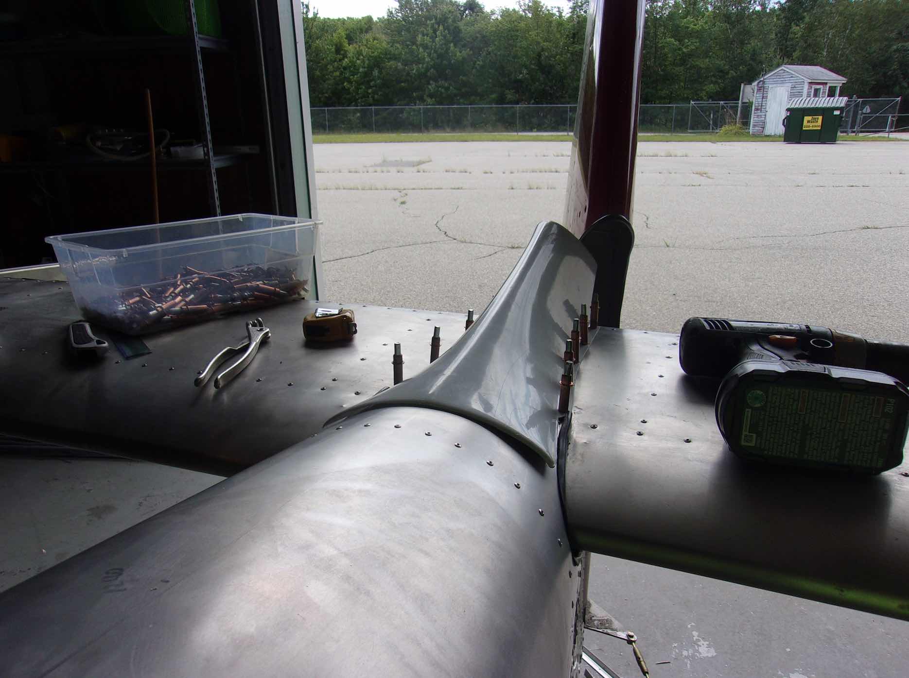 Чтобы показать немножечко прогресс давайте заглянем куда нибудь в потайное место. Например после того как присоединили крылья обнаружилось с два десятка "забытых" клепок которые надо было добить