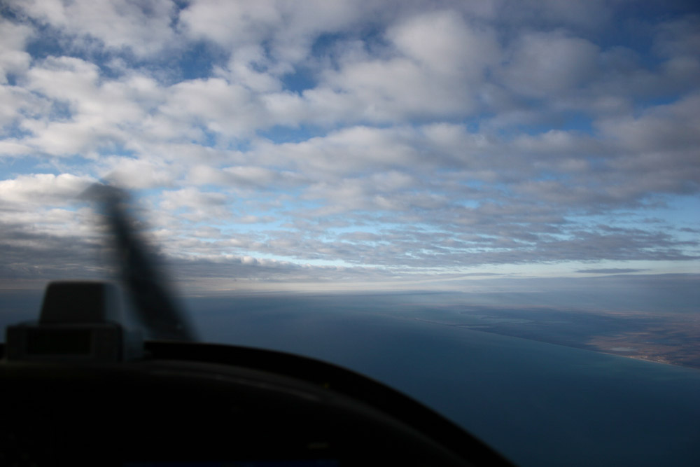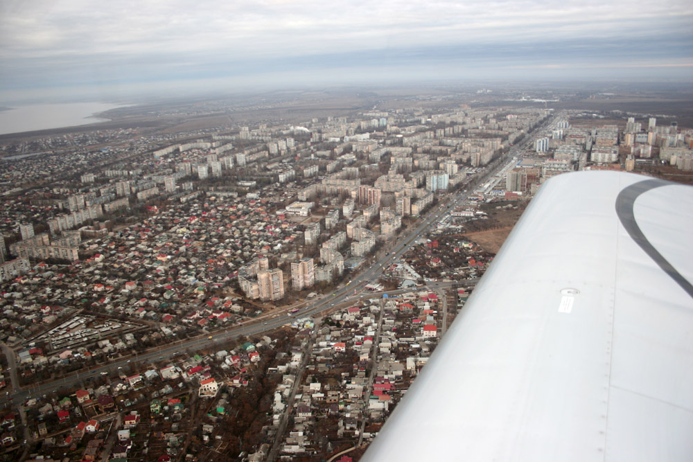 Взлетели, в полете непривычно после лета - воздух ровный, самолет охотно набирает высоту... но случился казус и я остался без внутренней и внешней связи, погрустив немного взялся за фотоаппарат.. сижу глазею, Сергей во всю общается с Симферополь Информация, я настраиваю частоты на которые планируется переход.. ну и щелкаю затвором фотоаппарата.