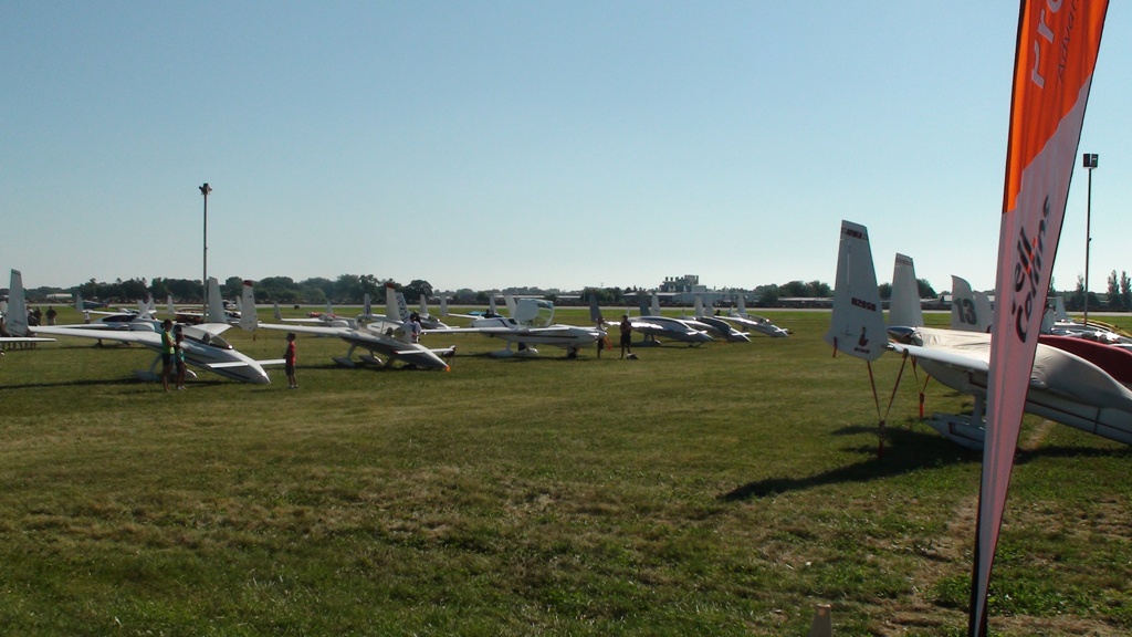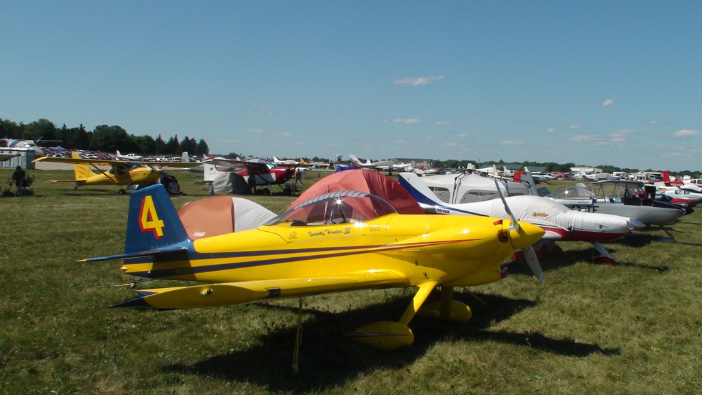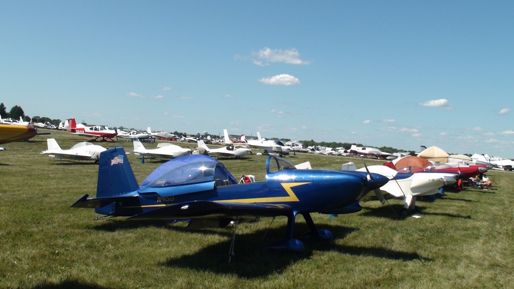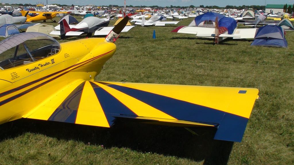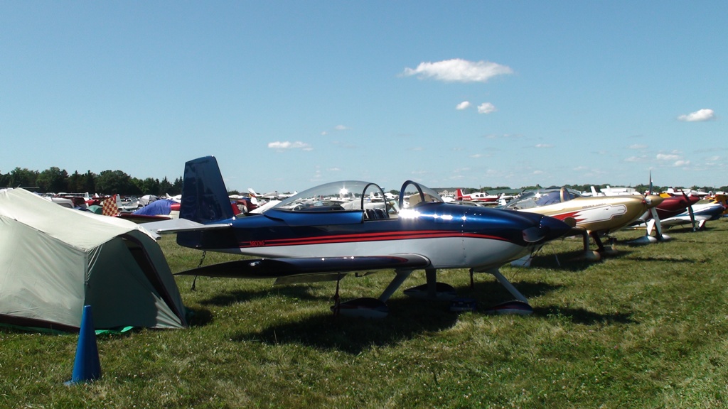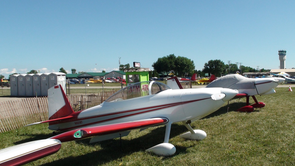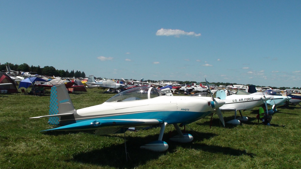 В Ошкош прилетели без проблем. Я, собственно, летел "хвостом" за Дагласом. Радиообмен в районе аэропорта бешеный - отвечать на команды диспетчеров, если он не задаст вопрос, запрещено. Необходимо лишь выполнять их команды. Интересная особенность - по местному НОТАМУ во время проведения выставки ЗАПРЕЩЕНО включать транспондеры из за большого количества ЛА в воздухе. После посадки зарулили куда было можно, а оттуда тащили наши самолеты до нашей экспозиции метров 600-от. Это была самая трудная часть перелета.