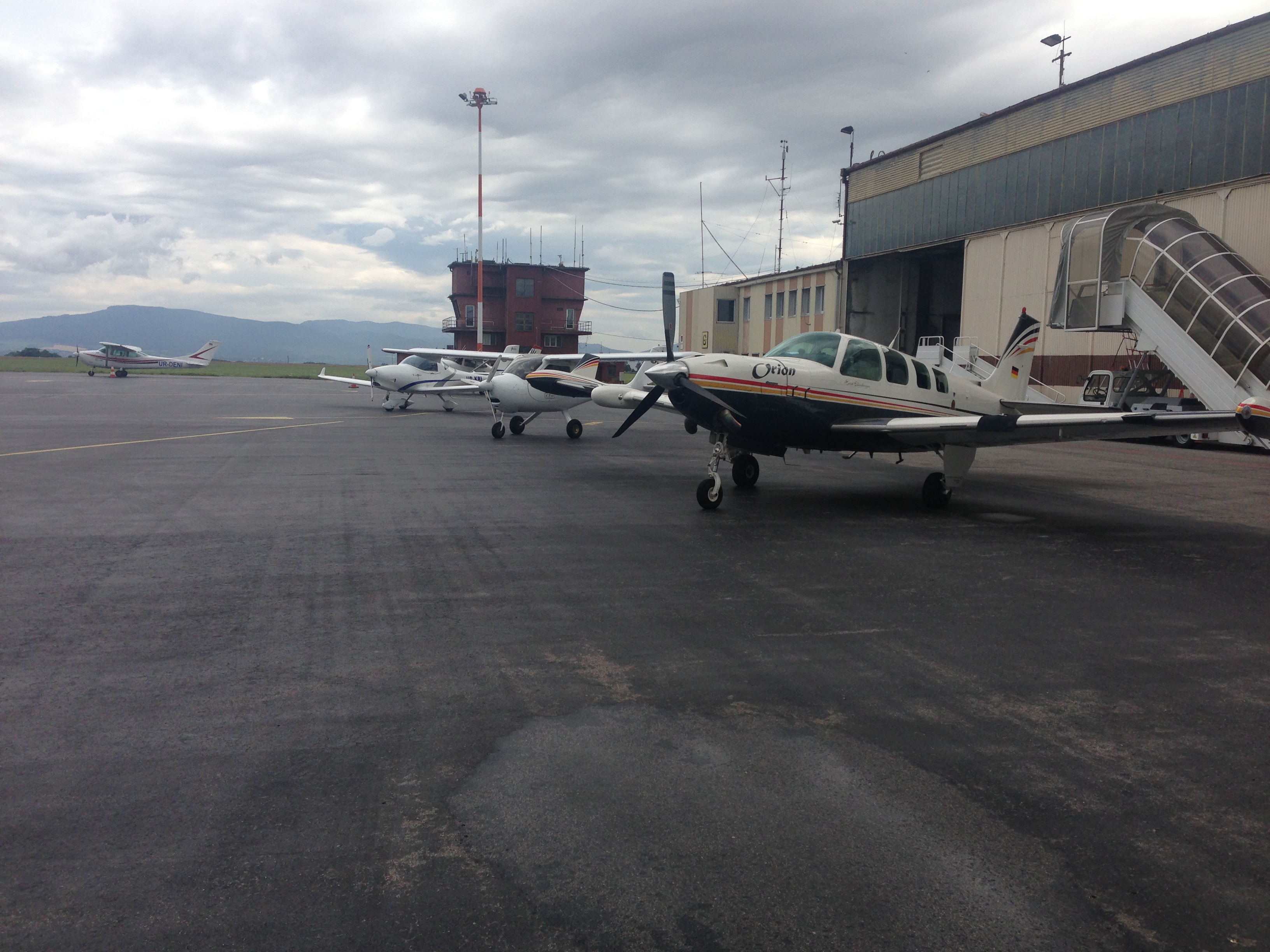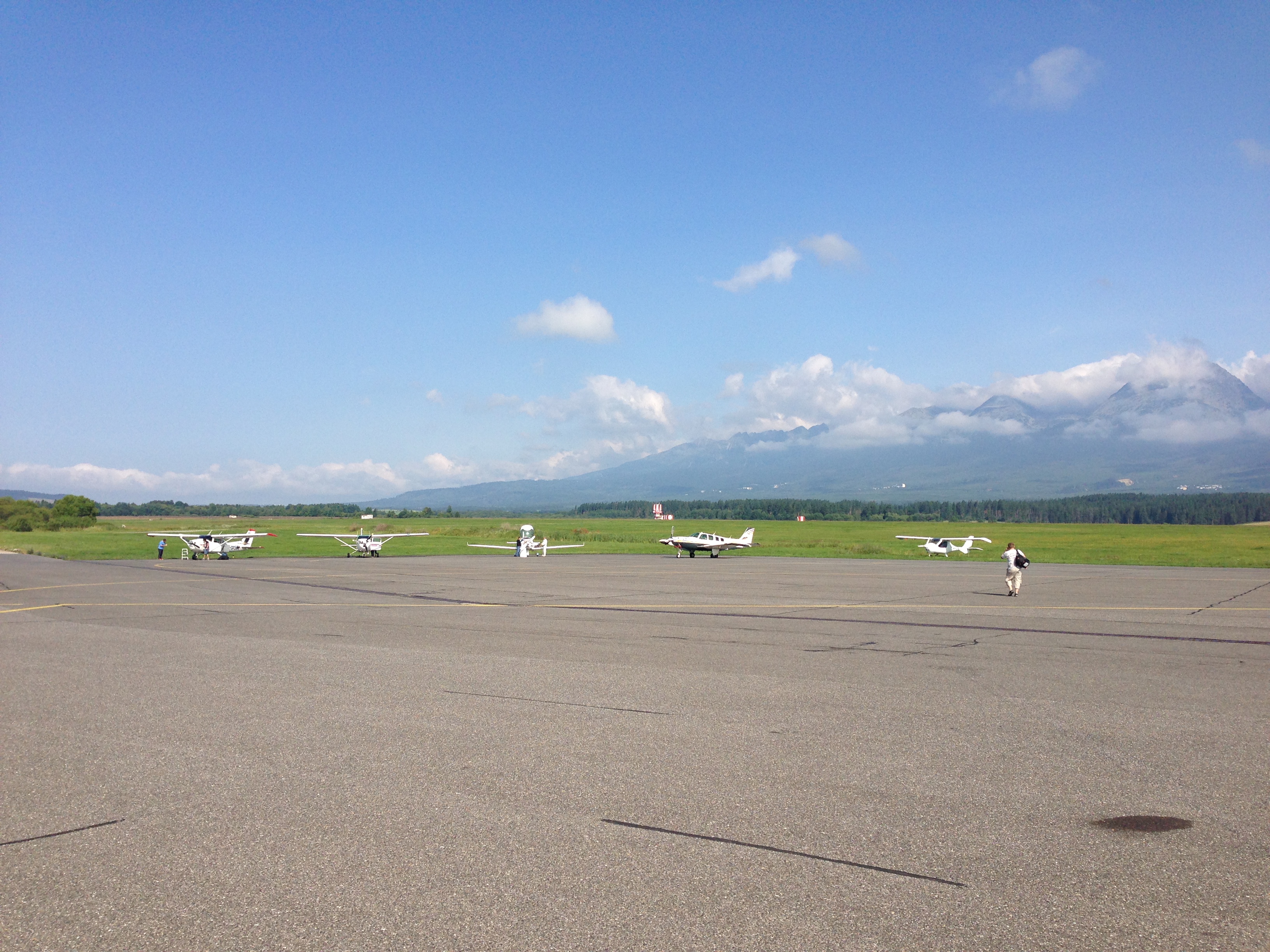 Утром 15 погода снова не порадовала. Прогноз был неутешительный и мы поняли, чем раньше улетим, тем больше шансов на успех. Местный инструктор Ян с Лонидом слетали на Wiper в разведку. Увидели окна в облаках и мы решили лететь. Минимально безопасная высота в горах была 5400 футов, чтобы пересечь горы. Облака висели на 3500 :unknown: Поэтому мы сделали маршрут через ущелье, чтоб не подниматься в облачность. После взлета, снова выстроились согласно предварительной договоренности и полетели мимо гор. Слева и справа были горы, вверху сплошная облачность. Если бы видимость начала ухудшаться или нижняя кромка снижаться - повернули бы назад. Но судьба распорядилась так, что мы нашли просвет и пролетели горы. Очень помогло оборудование Бонанзы. Я видел рельеф, я видел куда надо лететь, чтоб не попасть в горы, а также я видел 3 борта идущих за мной на радаре, которые по моей просьбе включили ответчики. По прилету в Попрад мы совершили посадку в порядке, в котором делали это на предыдущих аэродромах. Когда садились в Попраде гор практически не было видно, хотя погода была VFR, а посадку нам дали с попутным ветром. Все достойно справились с посадкой при таком ветре. Высокие горы мы увидели на следующий день. :)