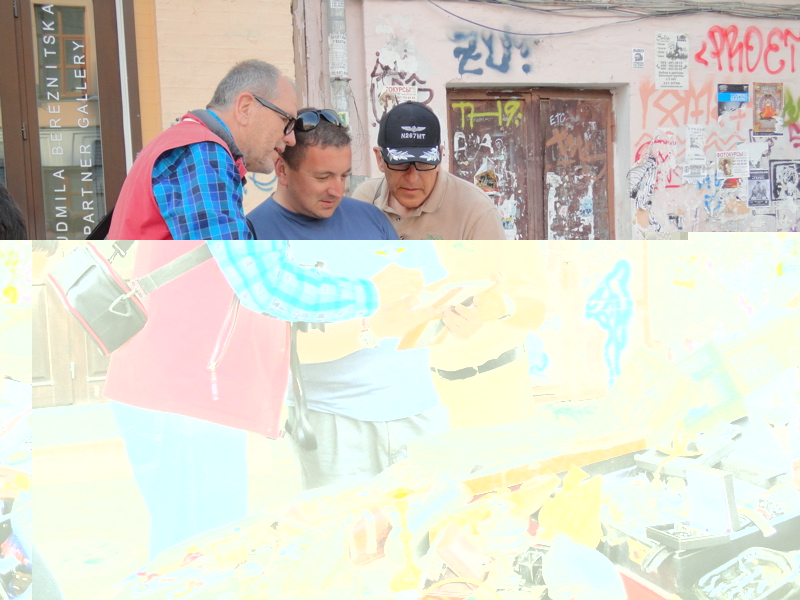 Особый интерес вызвал Андреевский спуск. Там было множество раритетов со времен 2-й мировой в том числе. Показательно: в самом внизу спуска стояла старушка в окружении двух десятков собак. Она собирала деньги на приют и кормежку для животных. Йорг подошел и дал ей полтинник, в то время как все оставляли по 3-5 Гривен. Она была сильно удивлена, но Йорг сказал: я из богатой страны и могу помочь чуть большими средствами. Вопрос даже не количестве денег, вопрос культурного восприятия - казалось бы какое ему, иностранцу, дело до наших собак?