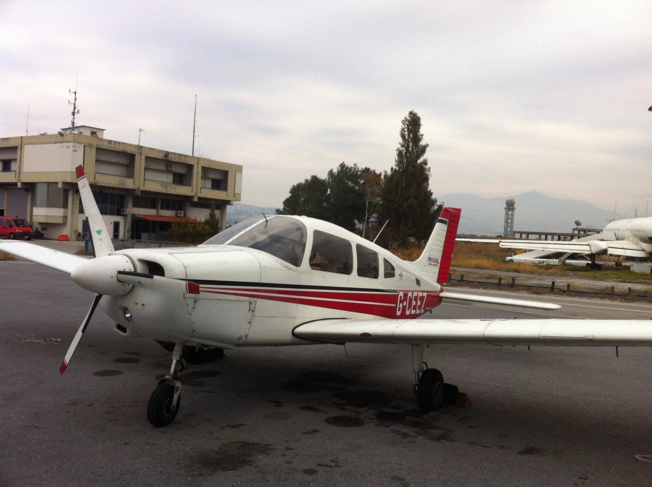 выдалась возможность арендовать в Салониках самолет. естественно, я ею воспользовался после недолгих формальностей мы прошли контроль и принимали самолет (важный и приятный сюрприз : карточка члена AOPA дала нам 50% скидку на handling в АП Македония LGTS). достался нам Pipier PA-28TDI
