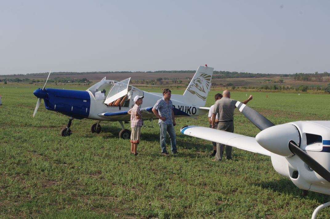 Чуть позже, найдя иформацию в интернет, выяснил, что в воскресенье краеведческий музей в Гуляйполе не работает и попытался перенести прилёт, но машина уже работала на полном ходу и менять что-то было поздно - музей заработал в воскресенье и наш воскресный визит превратился в небольшой слёт, в котором приняли участие наш Грумман, А-22 из Днепропетровска, Злин-42 из Донецка и мотодельта из Запорожья.