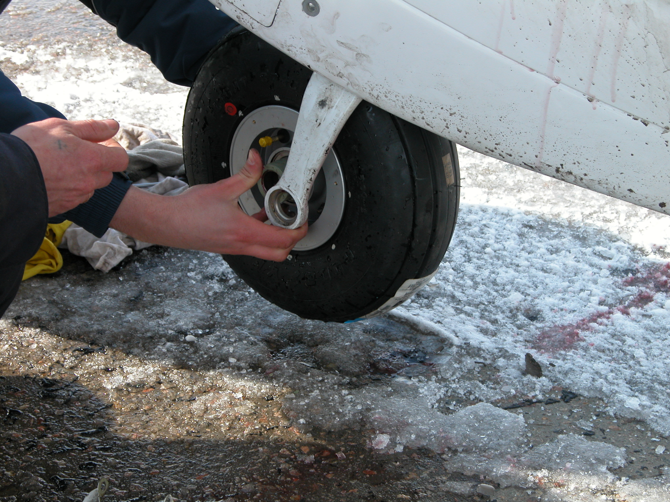 На прошлой неделе возникла необходимость полететь в Жешув, для встречи с потенциальными покупателями UR-NIKA. Самолет был оформлен в таможенном плане для экспорта. Вылететь я должен был до понедельника 5 марта. Четыре дня ждал погоды, но она не появлялась. В понедельник все таки принял решение лететь. Выбрав момент между снежными зарядами, подогрел самолет, оформился у пограничников и таможенников и порулил на полосу. В районе военных стоянок на РД2 почувствовал сильное биение носового колеса, как будто оно стало квадратным. Прекратил руление, доложился диспетчеру и выключил двигатель. Внешний осмотр показал, что пробито носовое колесо. Рулежку заблокировал, так что все самолеты начали использовать для руления РД1 и полосу. Потом самолет стащили на военные стоянки и заменили колесо. Опять процедура у пограничников и таможенников, а затем попытка номер два улететь...