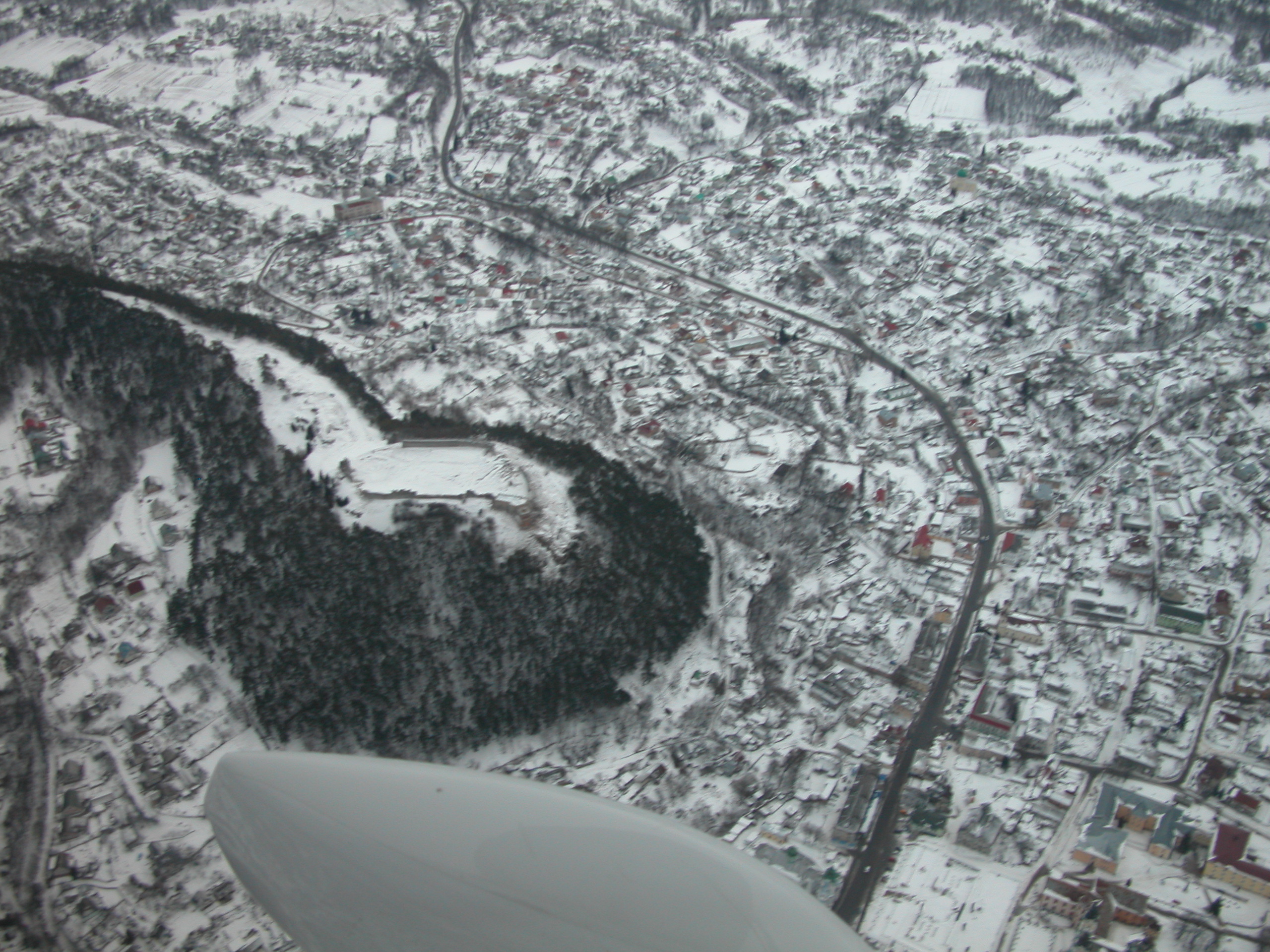 Увидел, что опять надвигается туча, и если не взлететь, то не улечу совсем. По новой оформлять все таможенные документы не хотелось, потому взлетел. Периодически ухудшалась видимость и обходил снежные заряды... После Шепетовки погода начала улучшаться. Львов информация запросил расчетное время пересечения границы. Я ответил 16.45. Он очень удивился и спросил как я могу без инструментального рейтинга лететь, ведь заход солнца в 16.08. Долго обьяснял, что к чему, но он по моему так и не понял (судя по дальнейшему разговору). Когда он спросил, собираюсь ли я входить в контролируемое пространство - я ответил, да, расчетное в 16.05. Диспетчер, естественно сказал связаться со Львовом Радар. Прошло полчаса и он опять спросил выходил ли я на связь с Львов Радар. Я ответил, что нет, так как до входа еще больше чем 10 минут. Львов информация ответил поторопитесь, а то заход солнца в 16.08. Вот тут я понял, почему он хотел, чтоб я побыстрее вышел на Львов Радар. Он хотел передать меня им до захода солнца, а там пусть они разбираются, можно мне лететь ночью или нет. По его ситуации все законно - передал в 16.05, заход в 16.08 - все правильно по ПВП днем