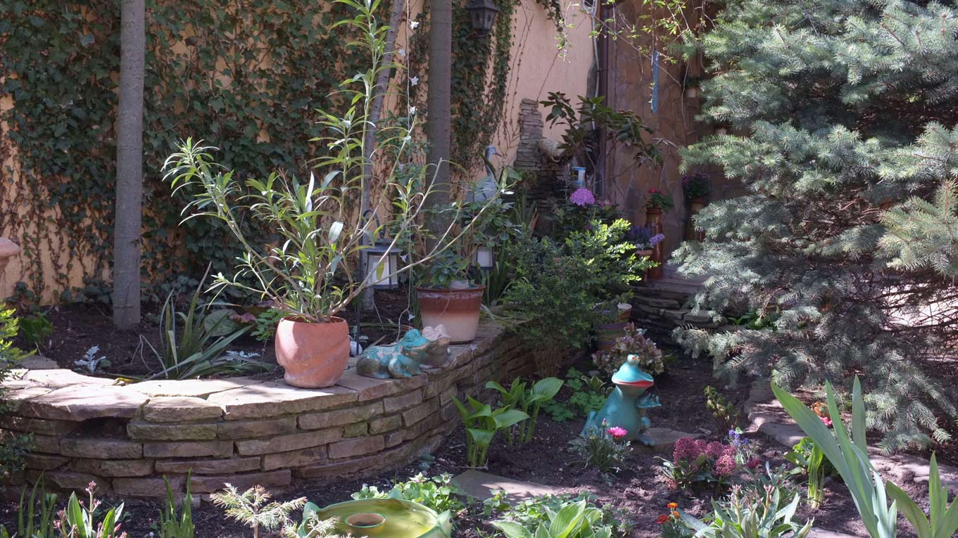 в маленьком городке, в тени деревьев, с видом на общественный теннисный корт и бассейн