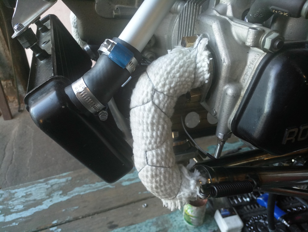 Его нужно закрыть силиконовым высокотемпературным рукавом. Асбест, вдыхаемый лёгкими, распространяется по кровеносным сосудам, закупоривая их. Он не растворяется в организме ничем и вызывает рак.