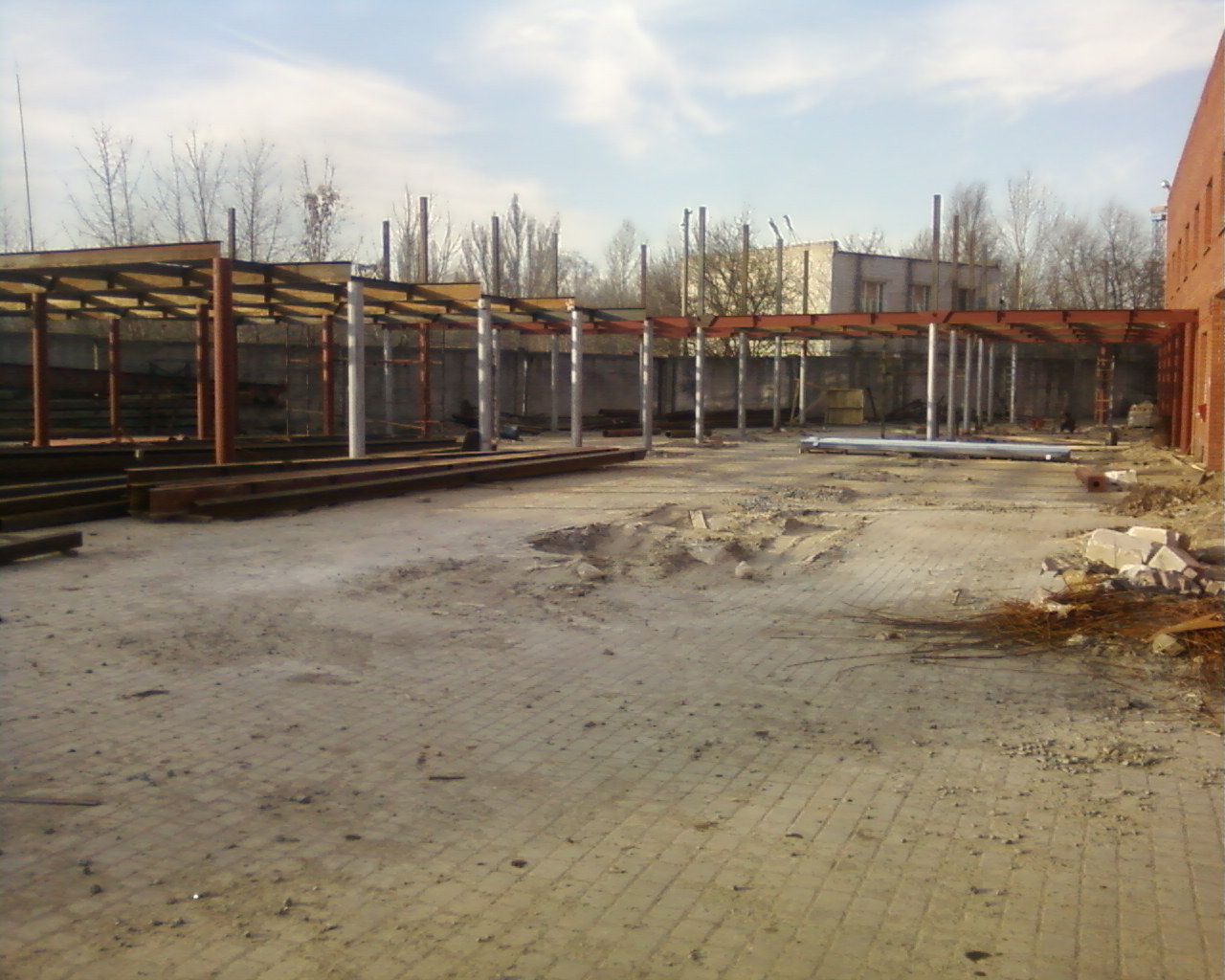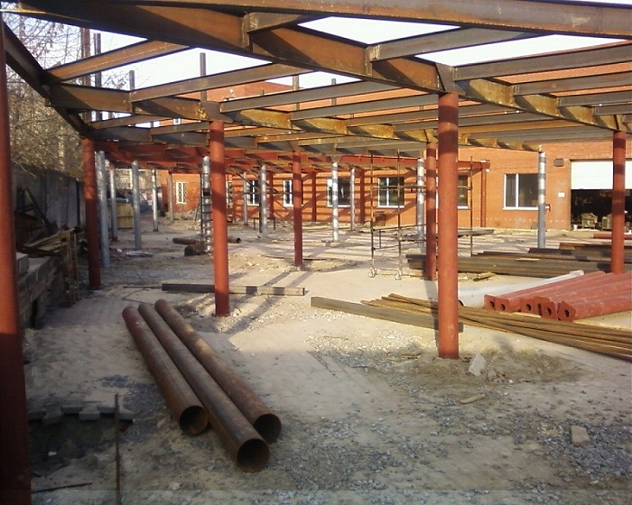 Продолжаем строить новый авиацех. Начали устанавливать стойки на втором этаже.