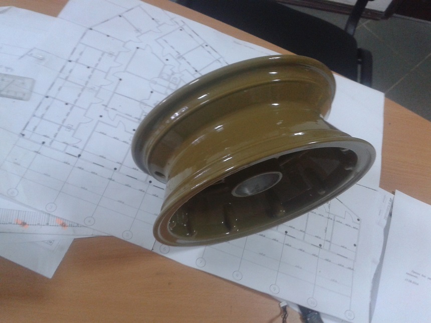 Покрасили несколько дисков порошковой краской, да еще и лаком покрыли. Не знаю, насколько такое покрытие будет практично, но красивый получился сильно. И цветовая гамма очень большая. Правда эти получились военные.