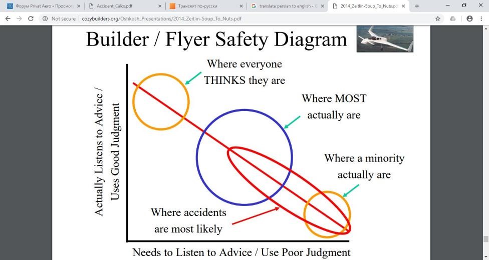 Я еще не проснулся так чтобы уж совсем соображать что я делаю поэтому переводом займусь попозже пока покажу один слайд с Вашего позволения характеризующий положение вещей с безопасностью полетов на самодельных канардах - ярчайшим образом характеризует что главное в нашем деле - это безопасность и чтобы ее обеспечить нужен каждодневный упорный труд и тренировки