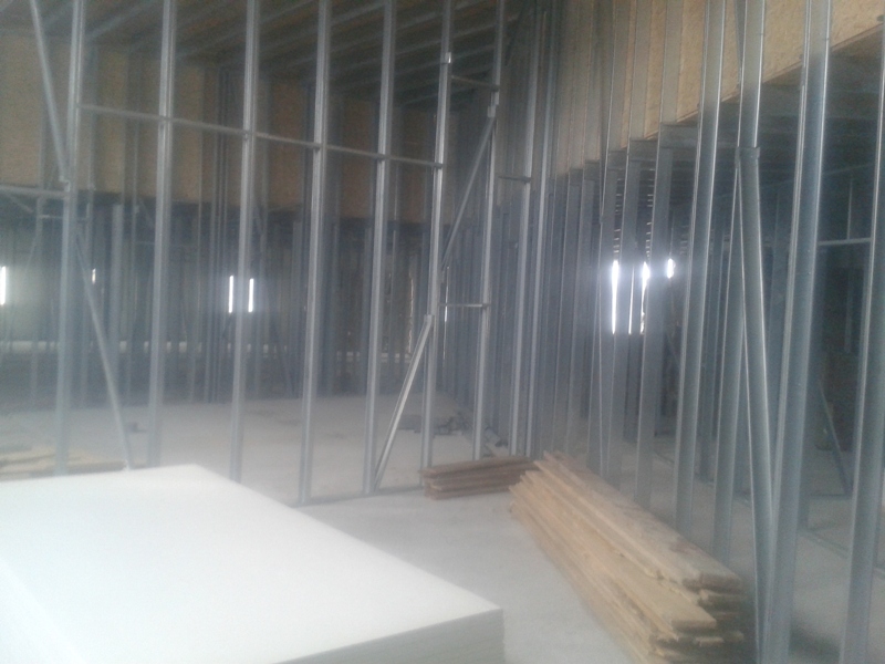 И вот что вышло на четвертом этаже нашего нового авиацеха. Стойки , они же являются перегородками комнат. На них держится крыша. А в центре высокая комната это спортзал.