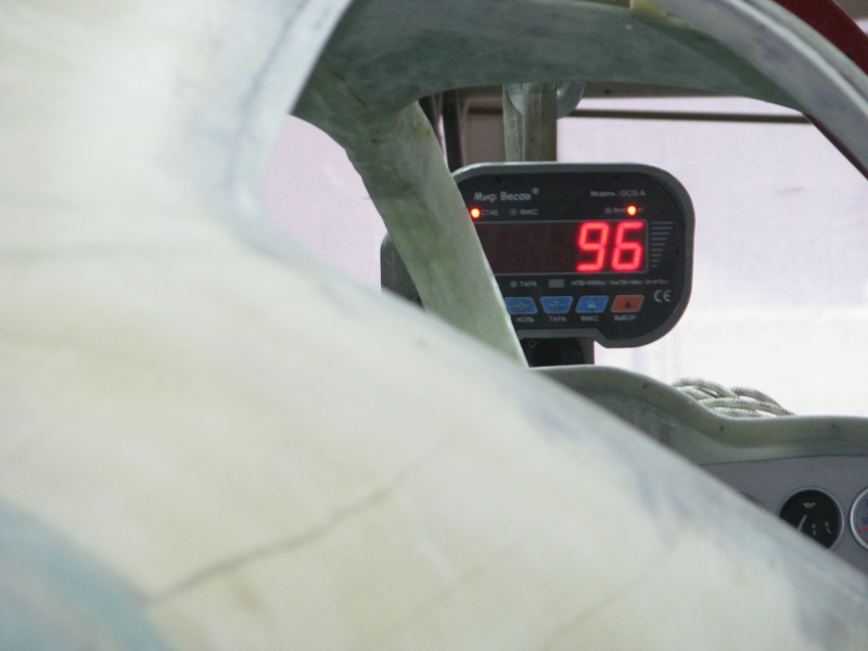 Взвесили фюзеляж. На нем установлен РН, одни двери, шасси в сборе с колесами, гидростанция с гидрораспределителями , шлангами и гидроцилиндрами, моторама, приборы контроля двигателя, нет стабилизатора, стекол, других дверей и сидений.