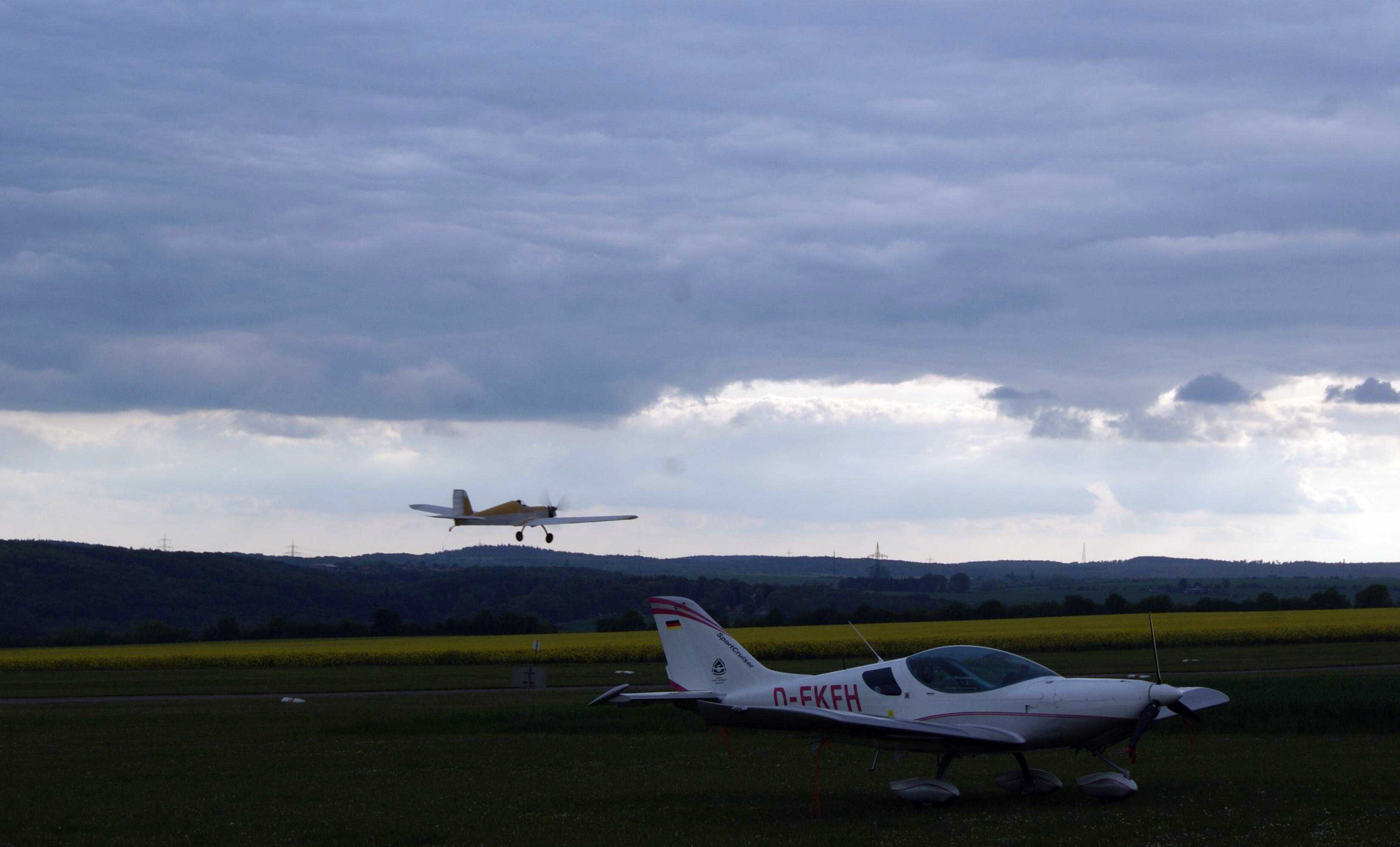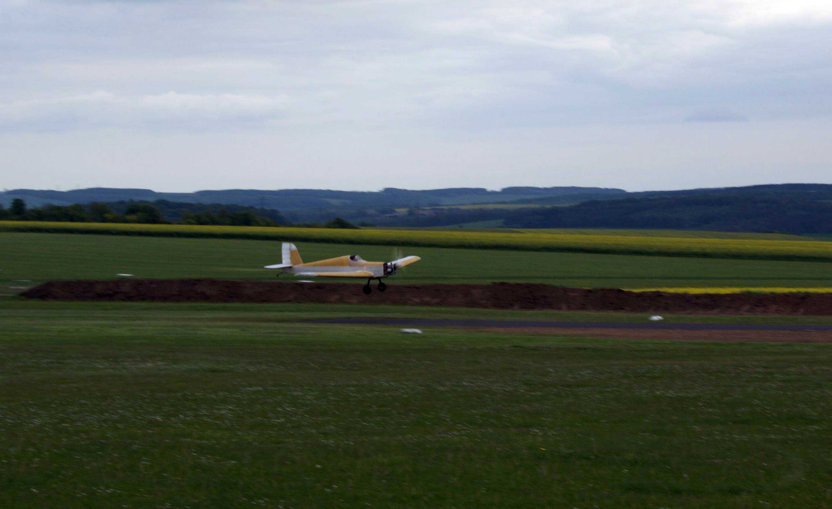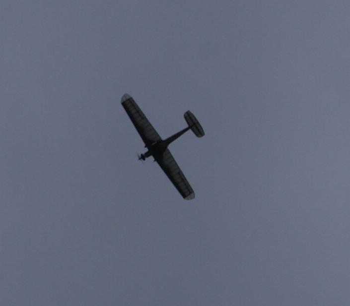 Потом начались руления. День погожий, и полоса была занята учебным конвейером. Мне выделили грунтовую рулёжку. Сразу же выяснилось, что не работает тахометр и указатель уровня топлива. К сожалению, электрический авометр я не взял (не говоря уже об осциллографе Улыбка ), так что исправить не представлялось возможным. Я проверил ЦТ, залил литров 7 и отправился рулить, справедливо полагая, что часа на полтора бензина хватит, а если даже и нет - придется вылезть и тащить самолет по полю. Первые же рулежки показали, что самолет при поднятии хвоста на скорости 60-70 км/ч по прибору управляется легко, правда, только при одном направлении ветра. Боковик был до 4 узлов, колдун все время показывал ветер вниз и если бы я летал на С42, я бы сказал, что ветра нет. Но Ульф - другое дело. Для любителей загадок, винт вращается против часовой стрелки если смотреть по направлению полета, так вот, если ветер при рулении слева, то все замечательно, а если справа, то не хватает РН на малых скоростях. Приходится срочно опускать хвост и стабилизировать самолет с помощью управляемого хвостового колеса. Потом еще, при резкой даче газа мотор иногда (далеко не всегда) "чихает", но еще ни разу не останавливался. Слишком бедная смесь? В конце-концов после примерно 7 рулений, у меня с панели от вибраций начало отваливаться радио и отвалилось полностью еще до того, как я зарулил. Один из двух крепежных винтов потерялся, так что мы пошли обедать (14:30). Я к этому времени уже устал и непрочь был завершать эксперименты. Однако, покушав и отдохнув, обнаружил, что небо затянула дымка и солнце перестало палить, к тому же у меня в ящике с инструментом случайно оказался запасной винтик для радио. Я подумал что это знак и решил продолжить. Заглянув в бак, обнаружил на донышке и залил крайние 5 литров. Во время обеда мне рассказали пилоты, что мой предшественник многократно делал подлеты. Я уже вполне освоился с рулением и решил попробовать подлететь. Зарулил подальше, разогнался до 70, чуть потянул - и самолет сразу начало сносить боковым ветром. Бороться я с ним не стал, снова отпустил и благополучно приземлился на основное шасси. Кто не знает, посадка на основное шасси сложнее посадки на 3 точки, и у меня при тренировках с инструктором раньше бывали проблемы. Но Ульф очень послушный, мне показался гораздо проще Rans S7, может быть потому что я в него полноценно помещаюсь. В следующем пробеге я еще чуть-чуть прибавил скорости и подлетел чуть повыше, при отпускании ручки ляпнулся чуть сильнее, и началось прогрессирующее козление. Где-то после 3 подскоков мне ничего не оставалось, как дать взлетный. Козление сразу прекратилось и самолет остался в более естественной из двух сред: в воздушной Подмигивание Пока я соображал чё дальше, полоса закончилась и я сообщил по радио, что Д-ПВ на круге. Стал быстренько оценивать обстановку. Двигатель в норме, самолет в вяленьком наборе, скорость 90. С трудом за пол-круга наскреб 100 метров и немножко успокоился. Нужно сказать, что раньше я летал на С42 один или с маленькой дочкой, поэтому привык к взлету ракетой в небо на 80-сильном Ротаксе. Когда же неделей раньше мне удалось наконец загрузить в С42 мою супругу (что само по себе уникальное событие), то мы скребли высоту примерно так же, как Ульф. Так что взлет с учетом 34 сильности мотора был мной оценен как нормальный. Немножк