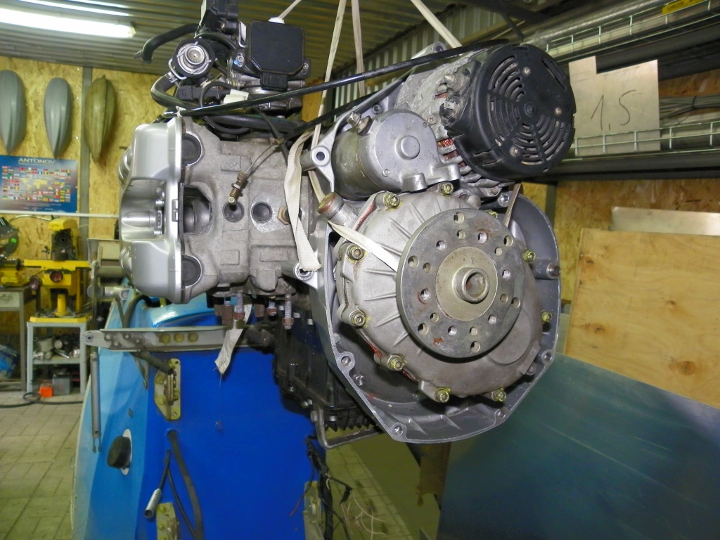 BMW K1200 4 цилиндра ,мак обор 8000 , вес с редуктором ( ротасс с 3,47 ) ,стартер , генератор, инжектор, без моторамы, глушителя , проводки , радиатора , тосола (4 л ) - около 80 к.г . Мощность 135 л,сил . в данный момент устанавливается на самолётик .