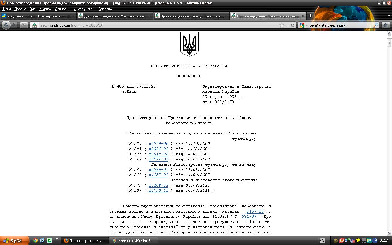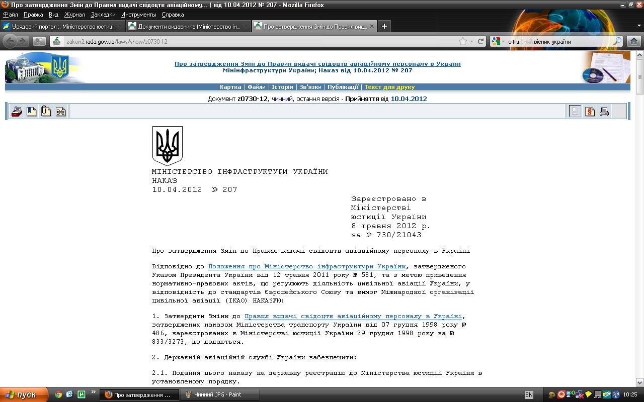 К этому времени уже были утверждены в Украине правила JAR-FCL, правда весьма необычным способом - без самого текста правил. В этом можно убедиться здесь