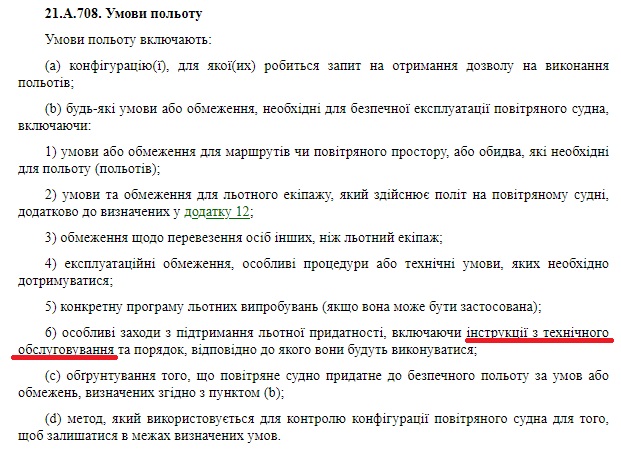 "ДОЗВІЛ НА ВИКОНАННЯ ПОЛЬОТІВ", пункт 21.А.708.