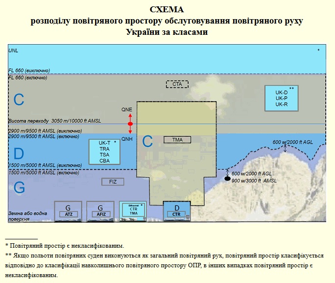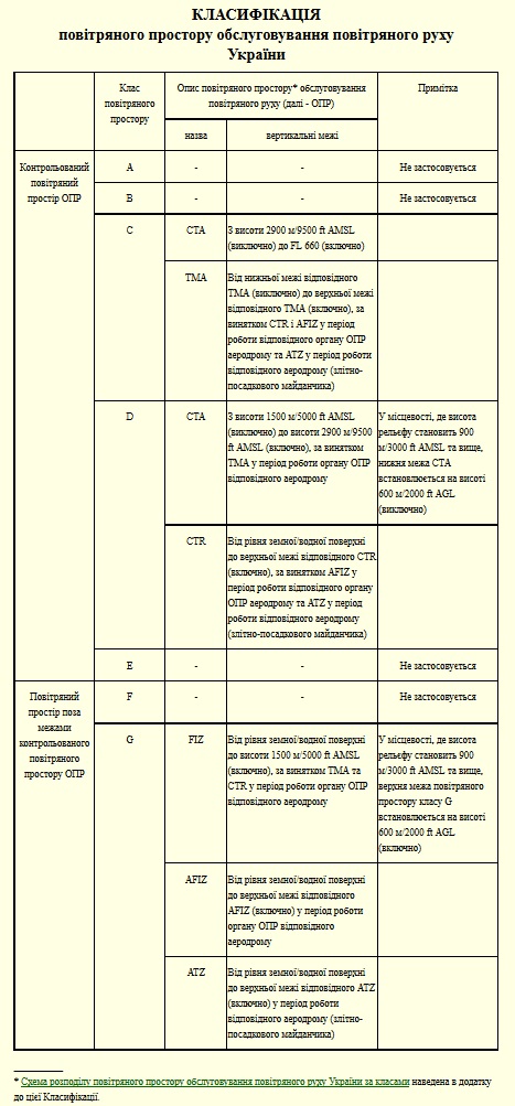 Мне здесь подсказали из Державислужбы, что в конце прошлого года окончательно утвержден и через месяц войдет в силу новый приказ N 1009 Мининфраструктуры с обновленной классификацией воздушного пространства в нашей стране. Полный текст здесь http://zakon1.rada.gov.ua/laws/show/z2203-13#n14