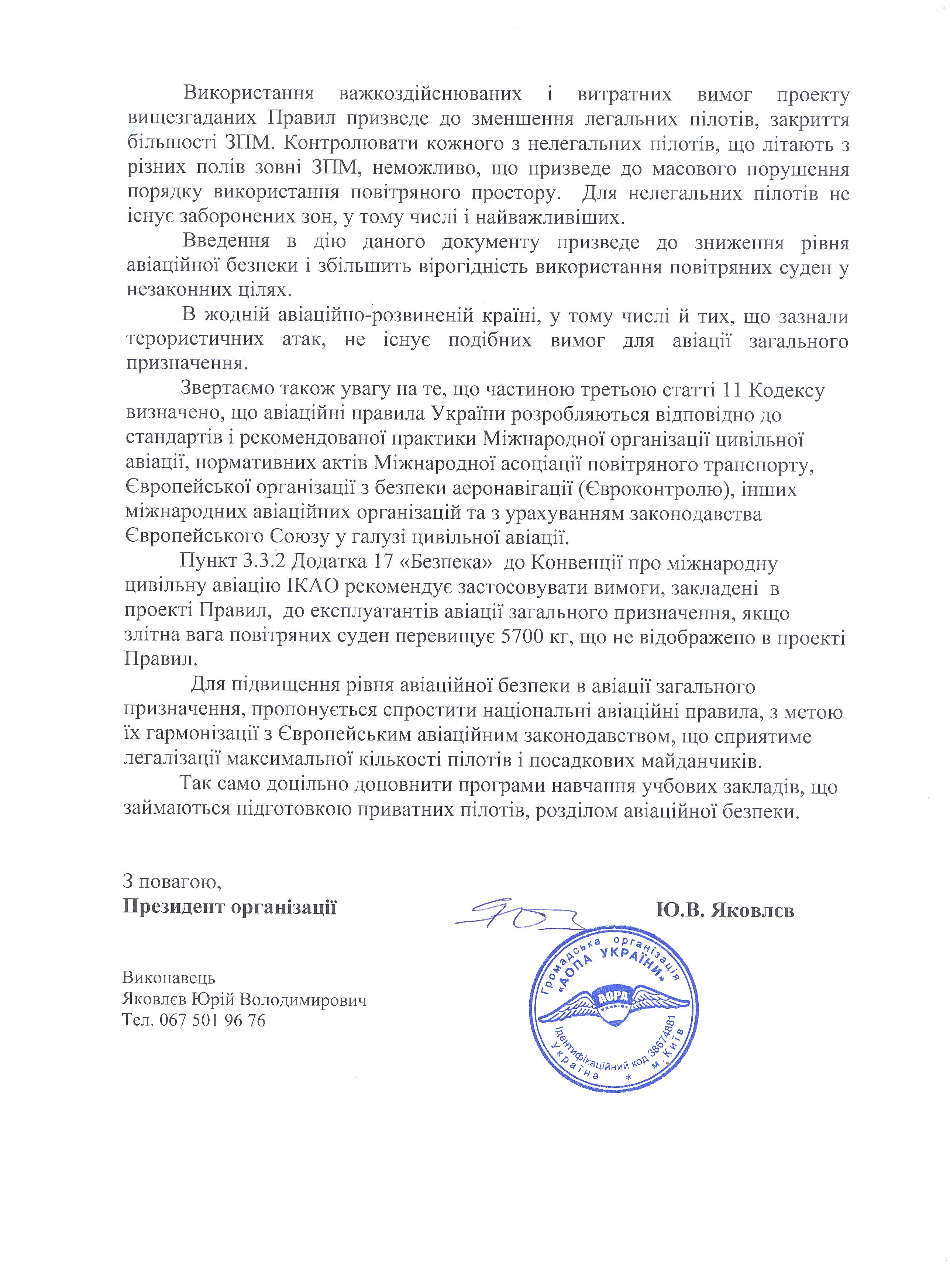 Данный"" Проект правил забезпечення авіаційної безпеки суб’єктами авіаційної діяльності авіації загального призначення "" Как репрессивно карупционным не назавеш ,на календаре 21век а чиновники живут по принципу запрещать и не пущать .Тот кто придумывает этот закон ,готовит себе место после Держ службы в сертефикационном центре трудоустроится ,где планирует строить свое финансовое благополучие . А вот хрена вам любезный .