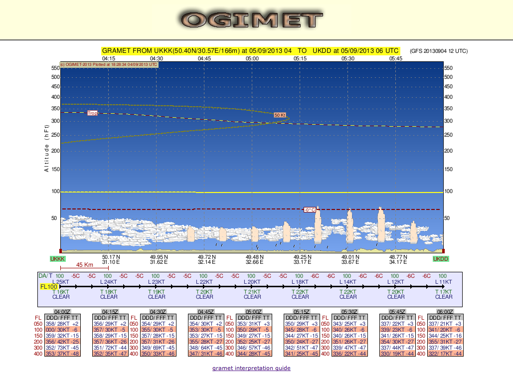 На картинке видно, на какой высоте будет переход температуры через ноль, где нас ждет сплошная облачность, верхний край облачности, рельеф местности, где будет обледенение, какие ветра по высотам дуют и много других полезных моментов для полета.