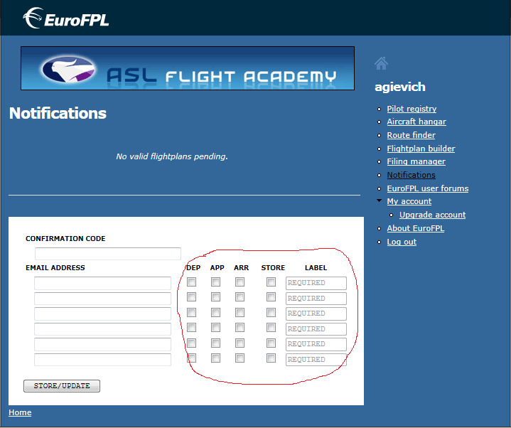 Или введи в одной из строк электронный адрес жены и поставь везде галочки - тогда, теоретически, на её адрес должны будут отправляться сообщения о взлёте, подходе, посадке во время выполнения твоих полётов. На практике - не уверен, что в Украине будет работать корректно.