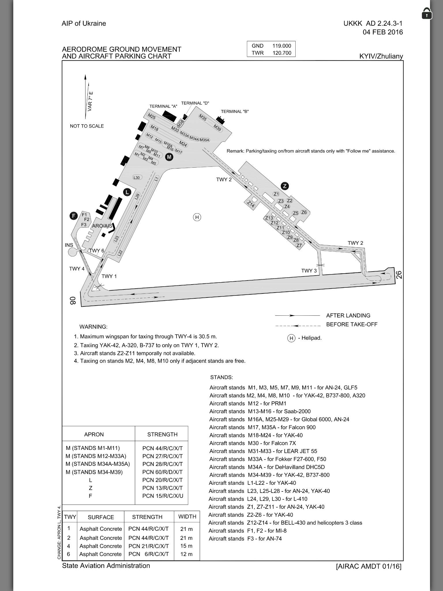 Ниже АИП с телефонами служб Жулян и схема руления, стоянок.
