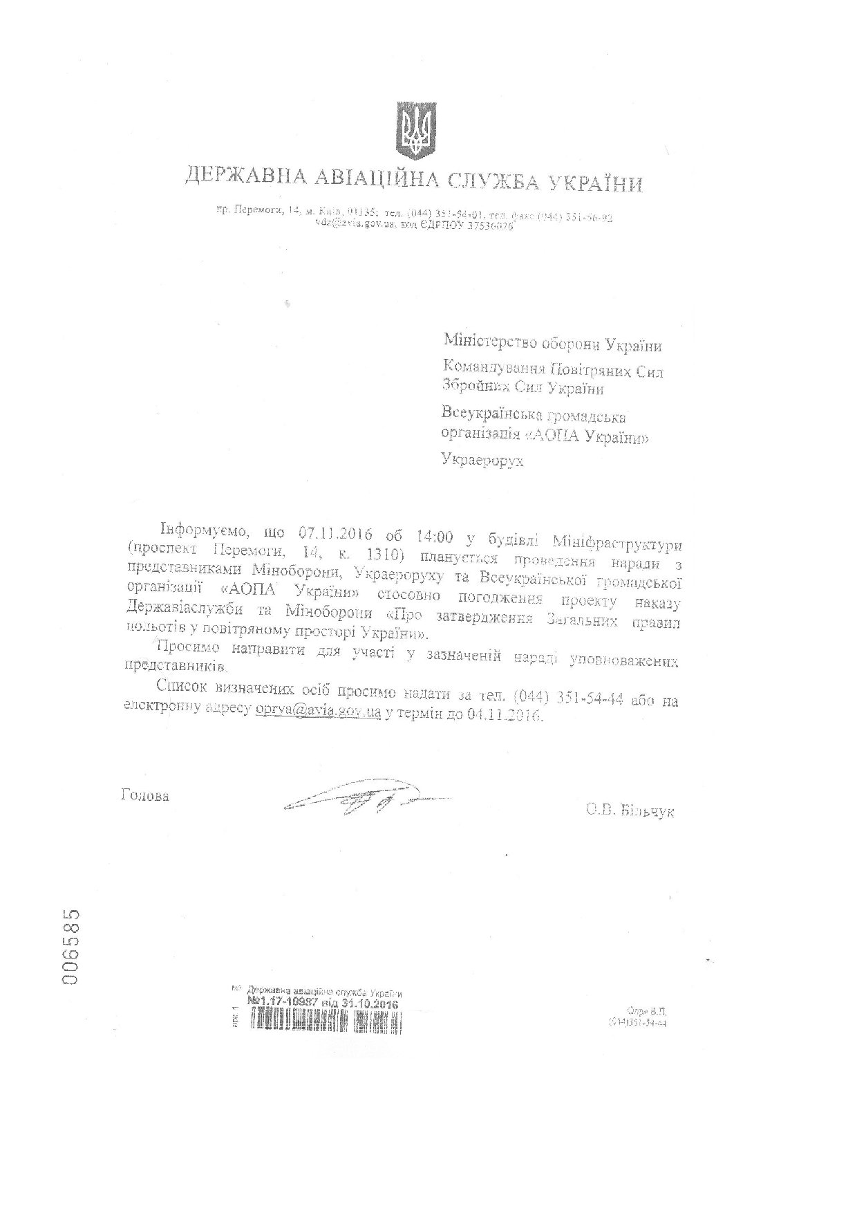 ( проспект Перемоги 14, ком. 1310 планується проведення обговорення стосовно погодження проекту наказу «Про затвердження загальних правил польотів у повітряному просторі України»