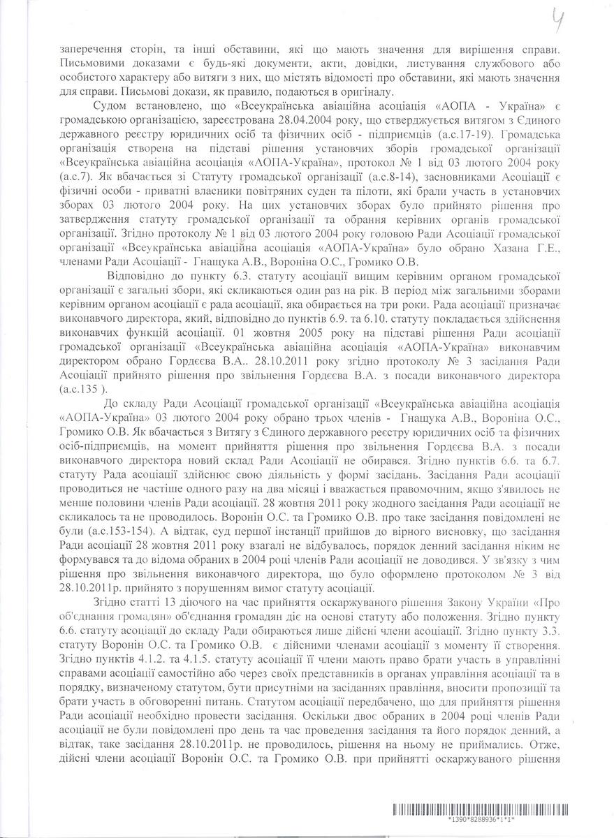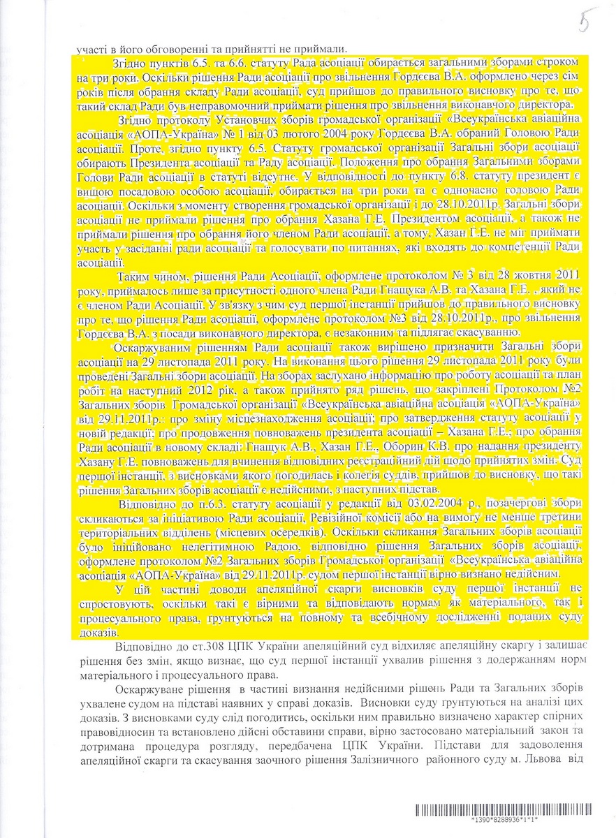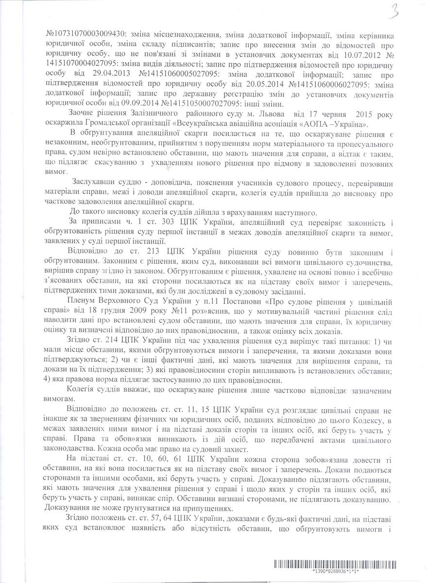 11.05.16 львовский апелляционный суд оставил без изменений решения суда первой инстанции в части признания решений Рады "АОПА-Украина" и Общих Сборов в 2011 году недействительными, а так же противоречащими Уставу организации и законам Украины. Признано, что Гордеев был уволен незаконно, а Хазан был и остается не более чем рядовым членом этой организации. Решение вступило в силу.