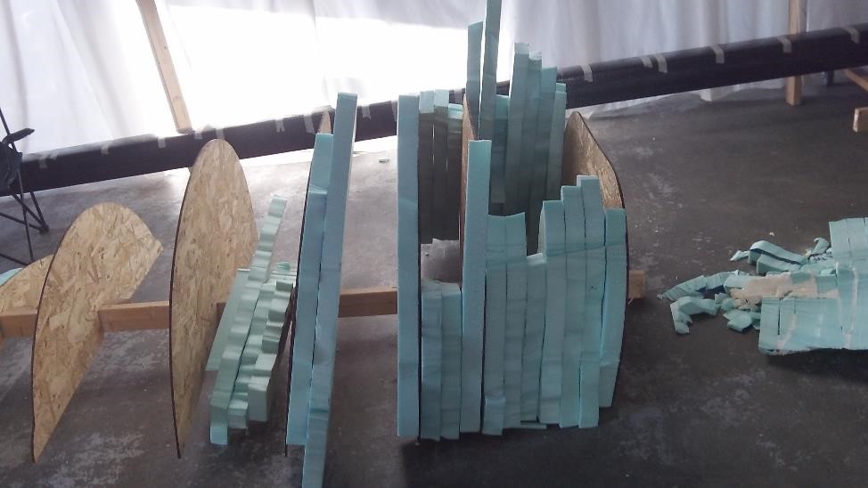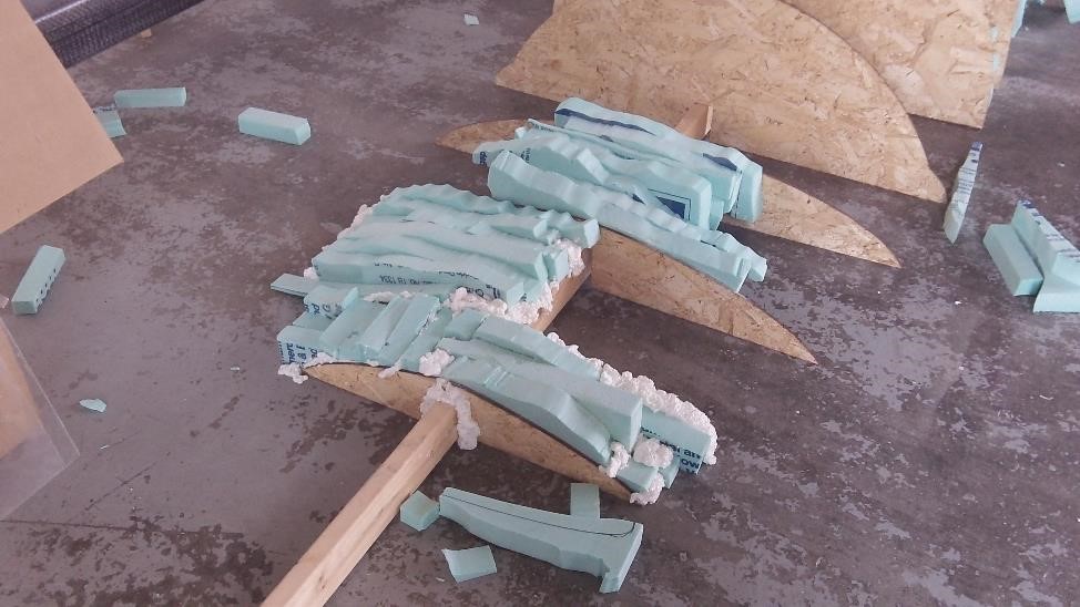 Ну а обработка пенопласта - это обработка пенопласта - Нам нужна просто форма нашей болванки - В общем и в целом пенопласт который зачищен шкурочкой - это просто форма для матрицы нашего будущего секционного крыла. Как я уже рассказывал в прошлом - наше крыло будет многосекционным нанизанным на лонжерон который наш Дядя Серёжа велел засунуть нам на склад. Еще не засунули - но все еще катаем поперек ангара туда сюда. как только будут нарезаны ребрышки мы сделаем прототип наших секций : центральную, секцию с закрылками и секцию с элеронами