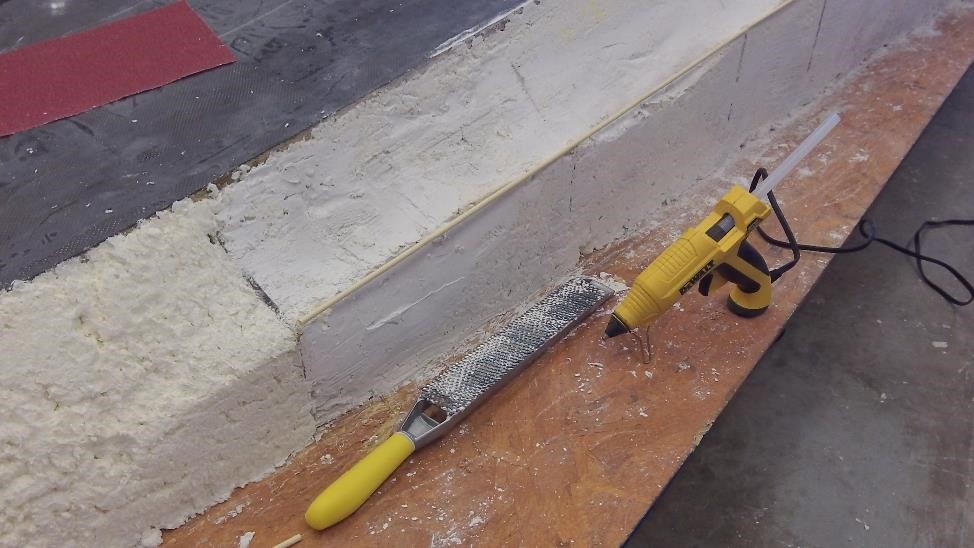 И тем не менее уже есть что напоказать. Из своей кельи . Один борт закамстролил. Кстати посмотрите на напильник для работы с пенопластом и сухой штукатуркой. Напоминает шредер для нарезки сыра в пармежан