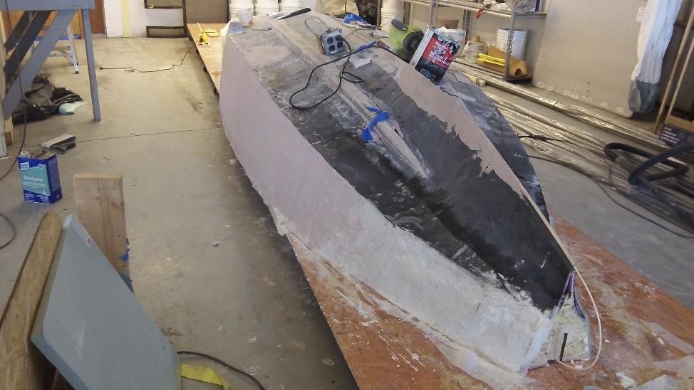 Наш мальчонка Данила Мастер задал мне сегодня потрясающий вопрос: " А кто еще делает и где что либо подобное?" Я не нашелся что ответить. Никто (насколько мне известно) не делает КИТ-амфибию Кроме Progressive Aerodyne Searey (нет не так: есть еще КИТ Osprey II - деревянный и Gweduk -композитная версия GRamman). Никто не делает из карбона способный сертификацию пройти LSA . То есть у нас вроде бы и конкуренции то и нет. Ну да ладно об этом пока еще рановато думать. Вернемся к конструкциям. Поддержал я таки борта сегодня с помощью эпоксидки Завтра буду Бондо наносить Ну и кое что сдвинул с места на полях кабинки Красивая должна получиться у нас кабинка надо Вам сказать