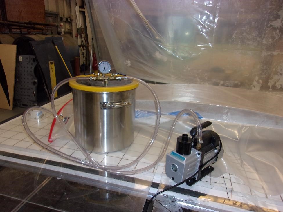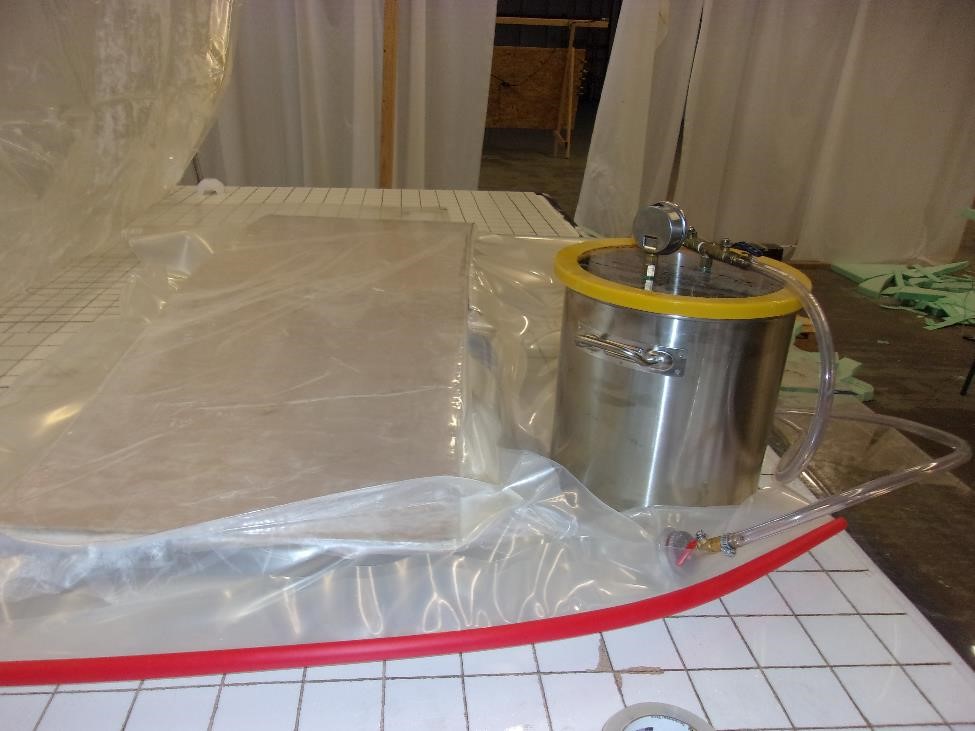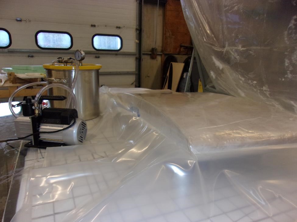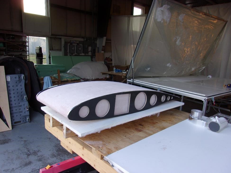 Если наши многоуважаемые Интернетосмотрители заметили - я уже и столик вакуумный починил, Но провека его еще впереди, А пока - мне надо закончить изготовление болванки под обшивку крыла. И после нескольких рауднов укрепления пенопласта с помощью эпоксидной шпаклевки БОНДО я залепил одну сторону нашей игрушечки стеклотканью промазал эпоксидкой и всунул все это в герметически закрытый вакуумный мешок... и включил вакуум. Такая же операция после того как наша болванка готова , будет проделана и с самой обшивкой. Мы налепим на обшивку слои карбона и всунем все это в мешок Потом посмотрим что получится