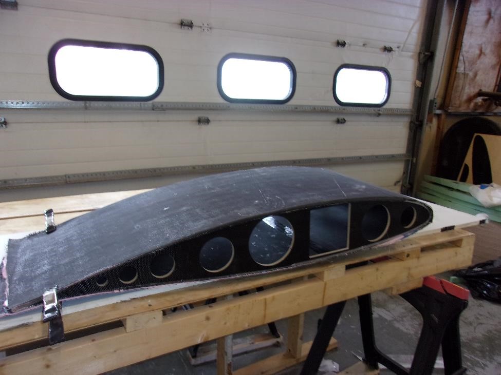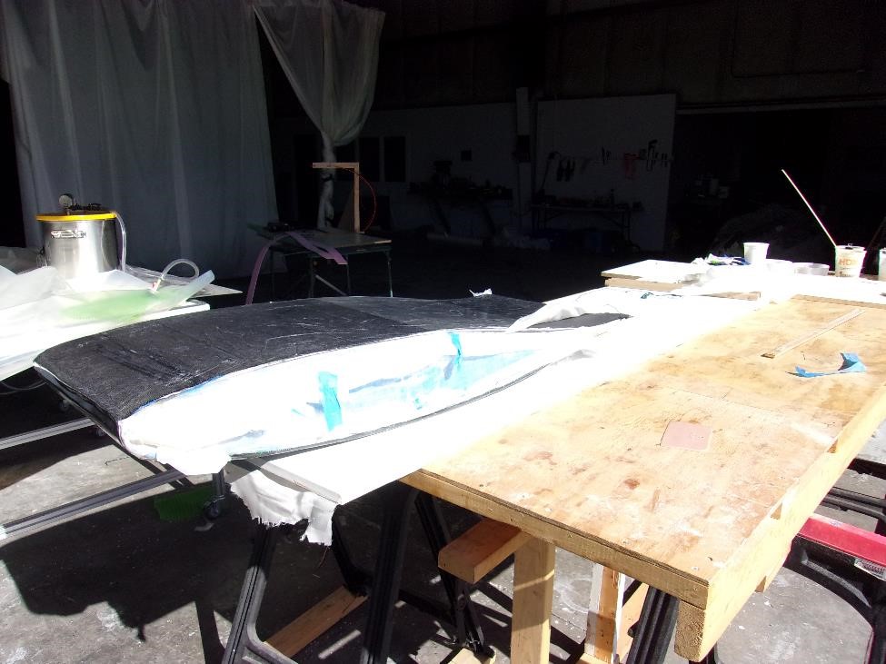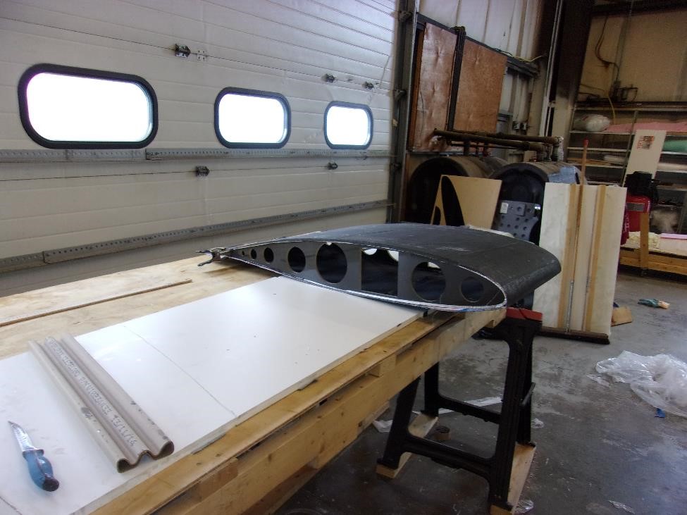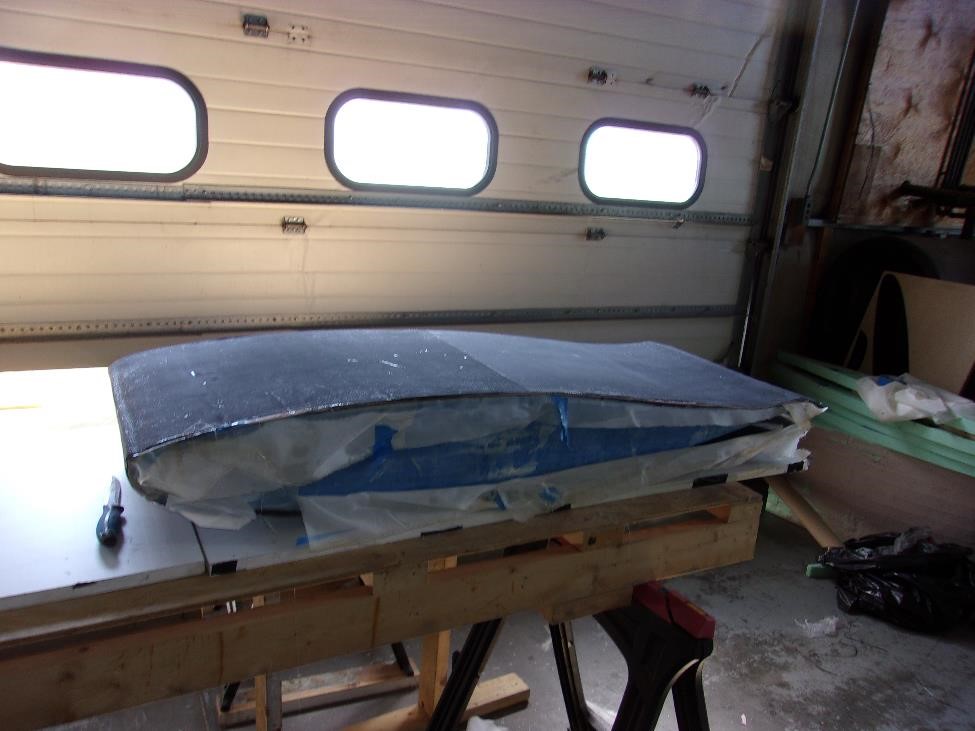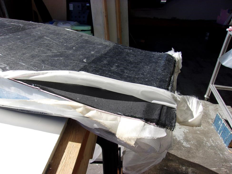 Каждый из секций мы укроем вот точно таким же комплектом показанным выше. Заделаем швы лентой. Секционно выглядеть все будет так: два метра длины или четыре блока на элероны, еще два метра длины или четыре блока на закрылки, метр цельного или два блока до оси симметрии. сверху мы все это покроем однонаправленным полотном длиной в 5 м и шириной в 1300 мм (хорды). Это даст нам четкую верхнюю обшивку и кромку нашего крыла. Нижняя же обшивка будет более сложной -